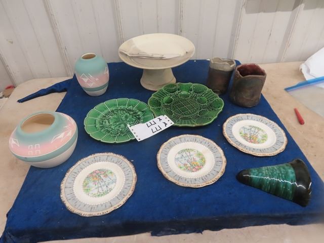 Pottery Vase + Tray, 3 Silver Birch Royal Albert Plates plus more