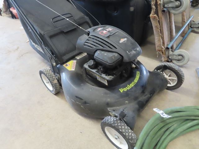 Poulan 4.75 HP - 21" Push Gas Mower w Bagger & Rubber Garden Hose
