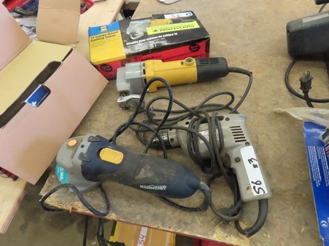 Power Fist 14 Gauge Metal Sheer, Master Craft Angle Grinder, 3/8'' Makita Drill