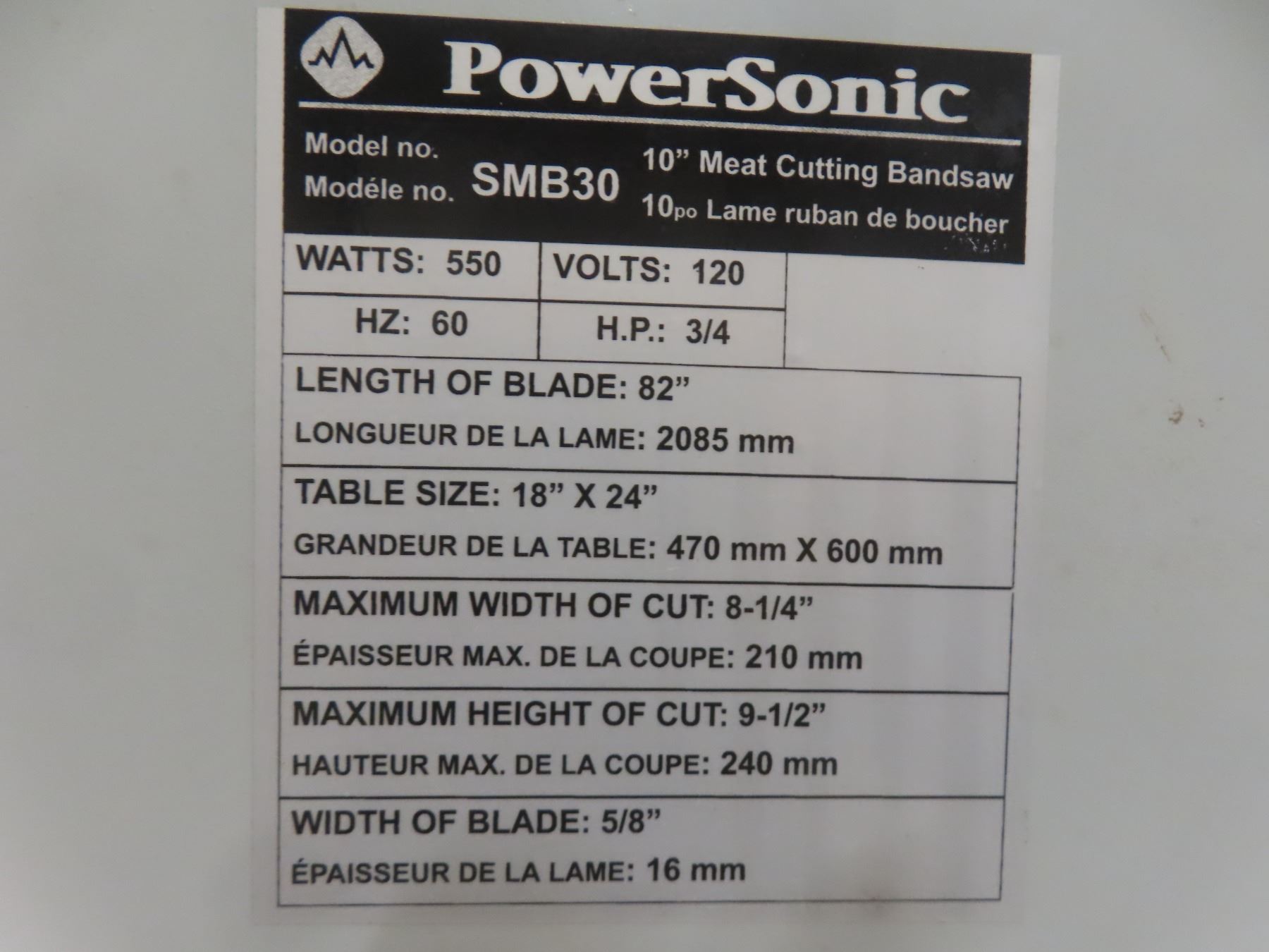 Power Sonic Meat Bandsaw with Grinder and Sausage Stuffing Attachments
