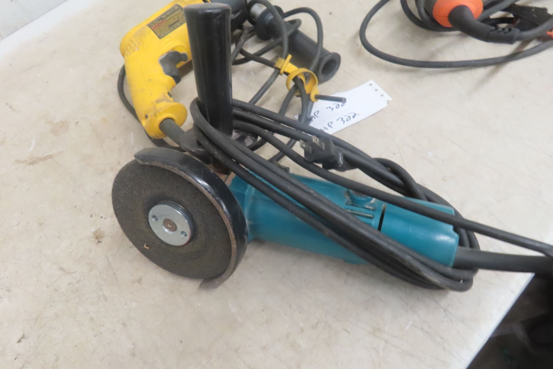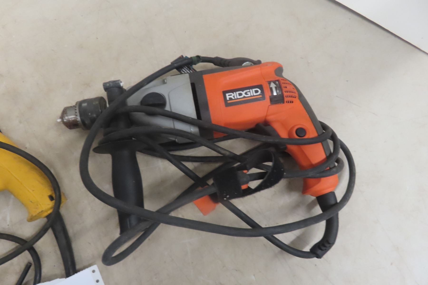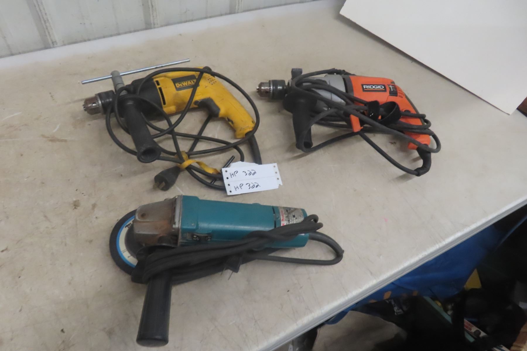 Power Tools - Ridgid Hammer Drill; DeWalt 1/2" Drill; Makita Angle Grinder