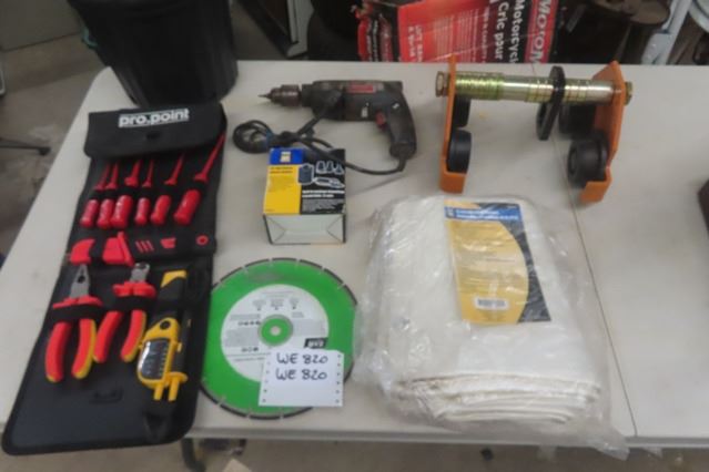Powerfist 1 Ton Trolley, 6' x 8' Welding Blanket, 12V Inflator, Propoint Tool Kit, Skil Drill