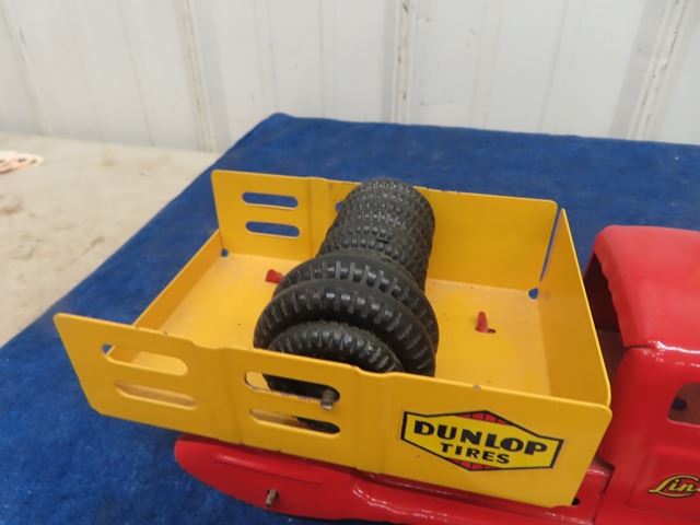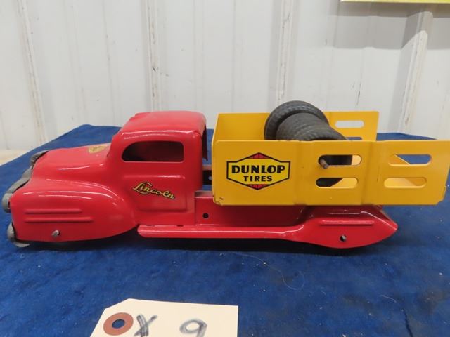 Pressed Metal Lincoln Dunlop Tire Delivery Truck 11" x 3.75" x 4"