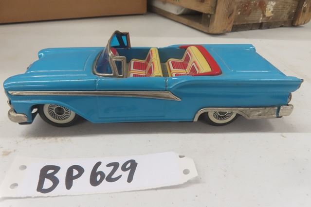 Pressed Tin 1950's Ford convertible Friction Toy - Haji Japan 8" Long
