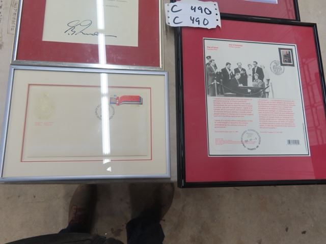 Prime Minister Trudeau + Queen Elizabeth framed w Certificate & Envelope
