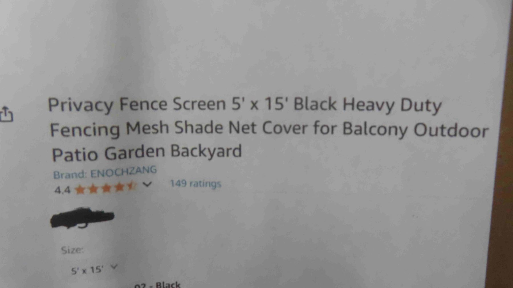 Privacy Fence Screen 5' x 15' Black Heavy Duty Fencing Mesh Shade Net Cover for Balcony Outdoor Patio Garden Backyard - New or Store Return