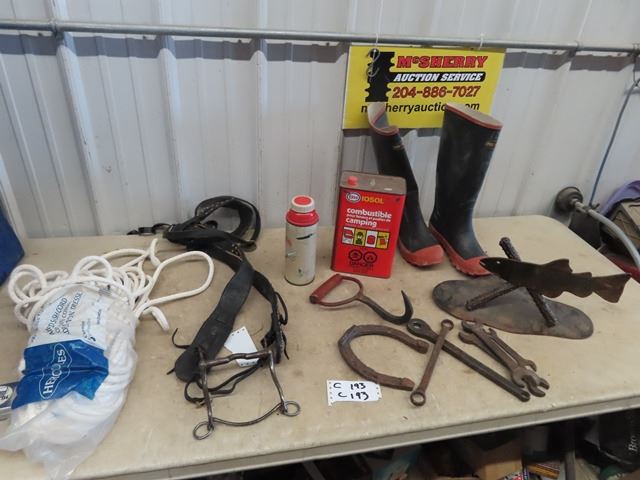 Proline New Size 9 Rubber Boots, Braided Sash Cord, Bridle, Bale Hook, Metal Fish Display, & Wrench