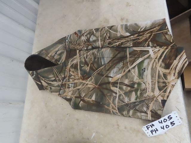 Propane Camping Water Heater & Camo Vest Floater Sz XXXL