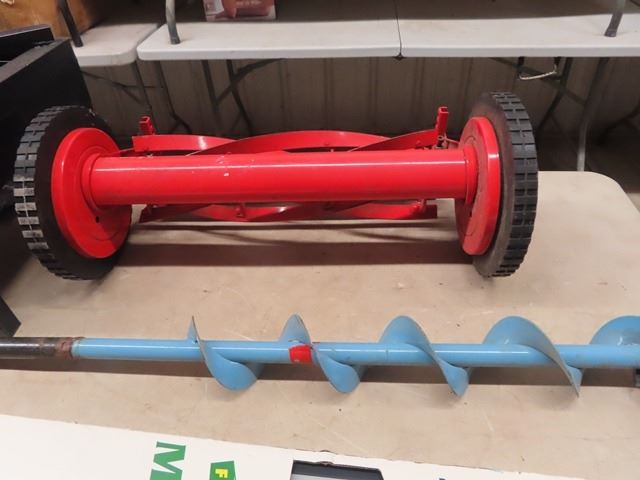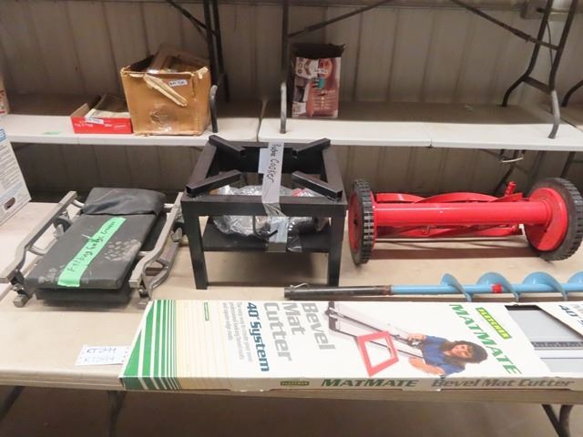 Propane Cooker, Garage Creeper, Auger, Push Mower Mat Mate Cutter
