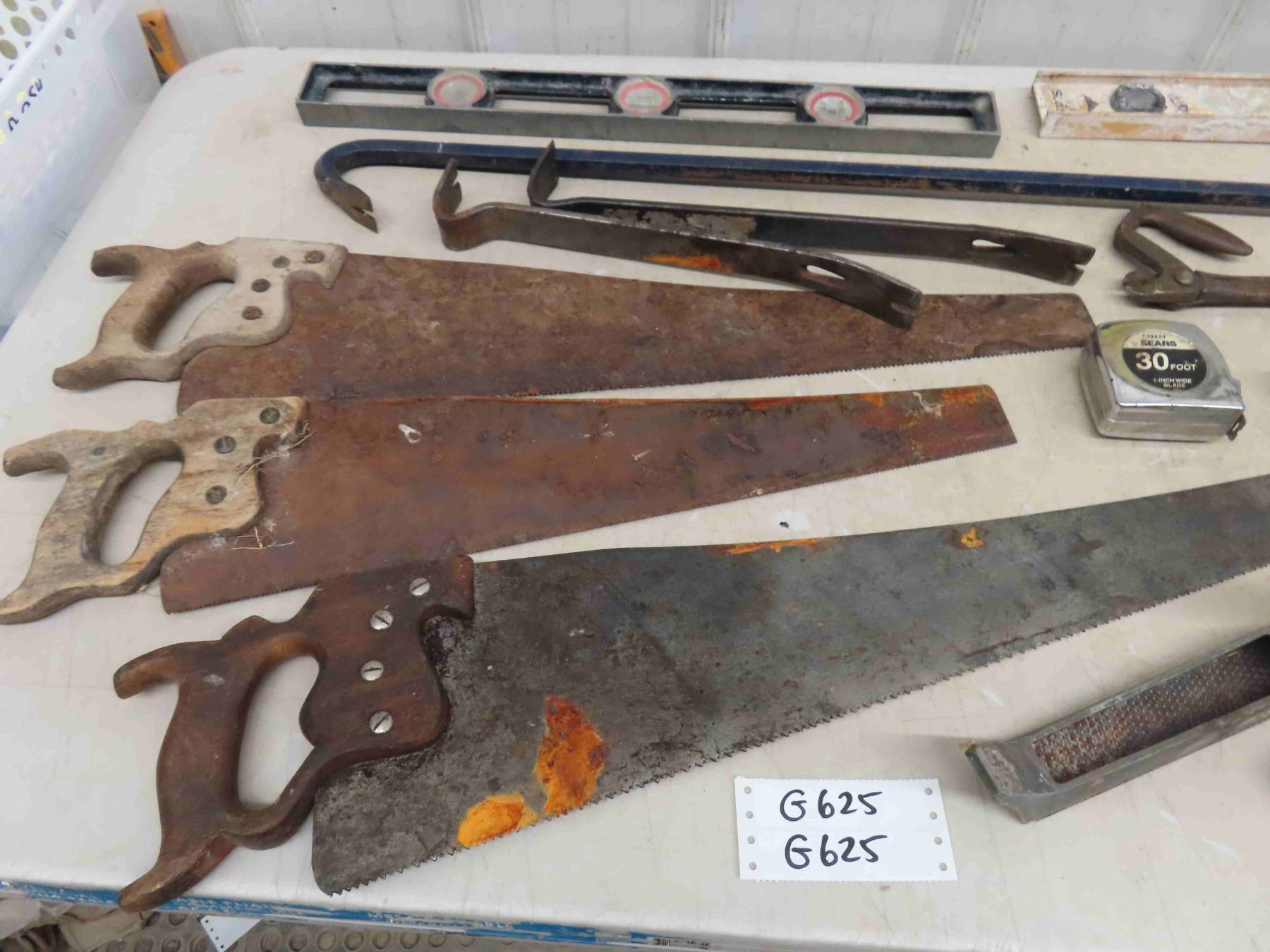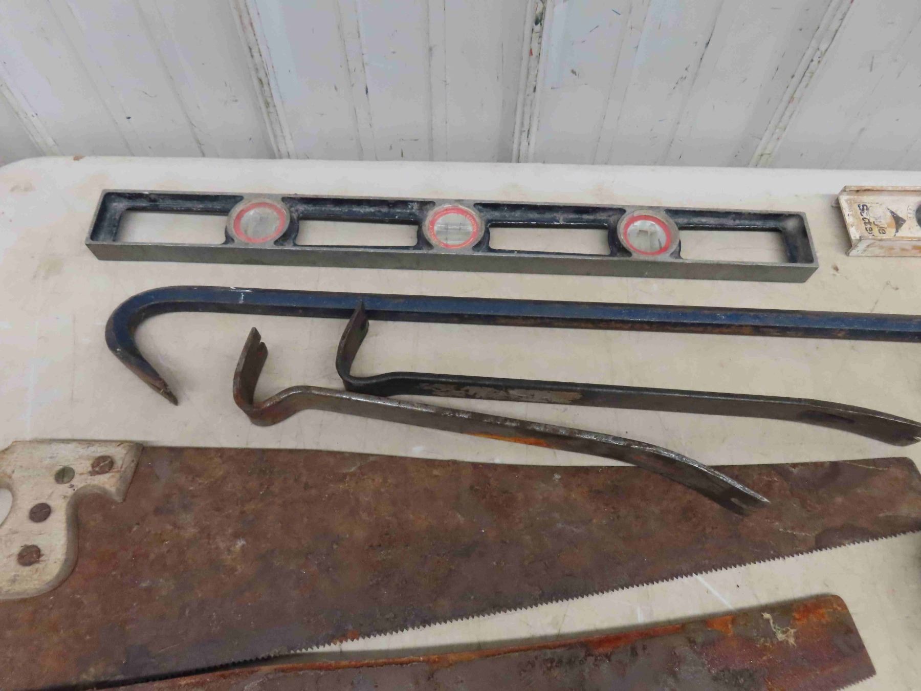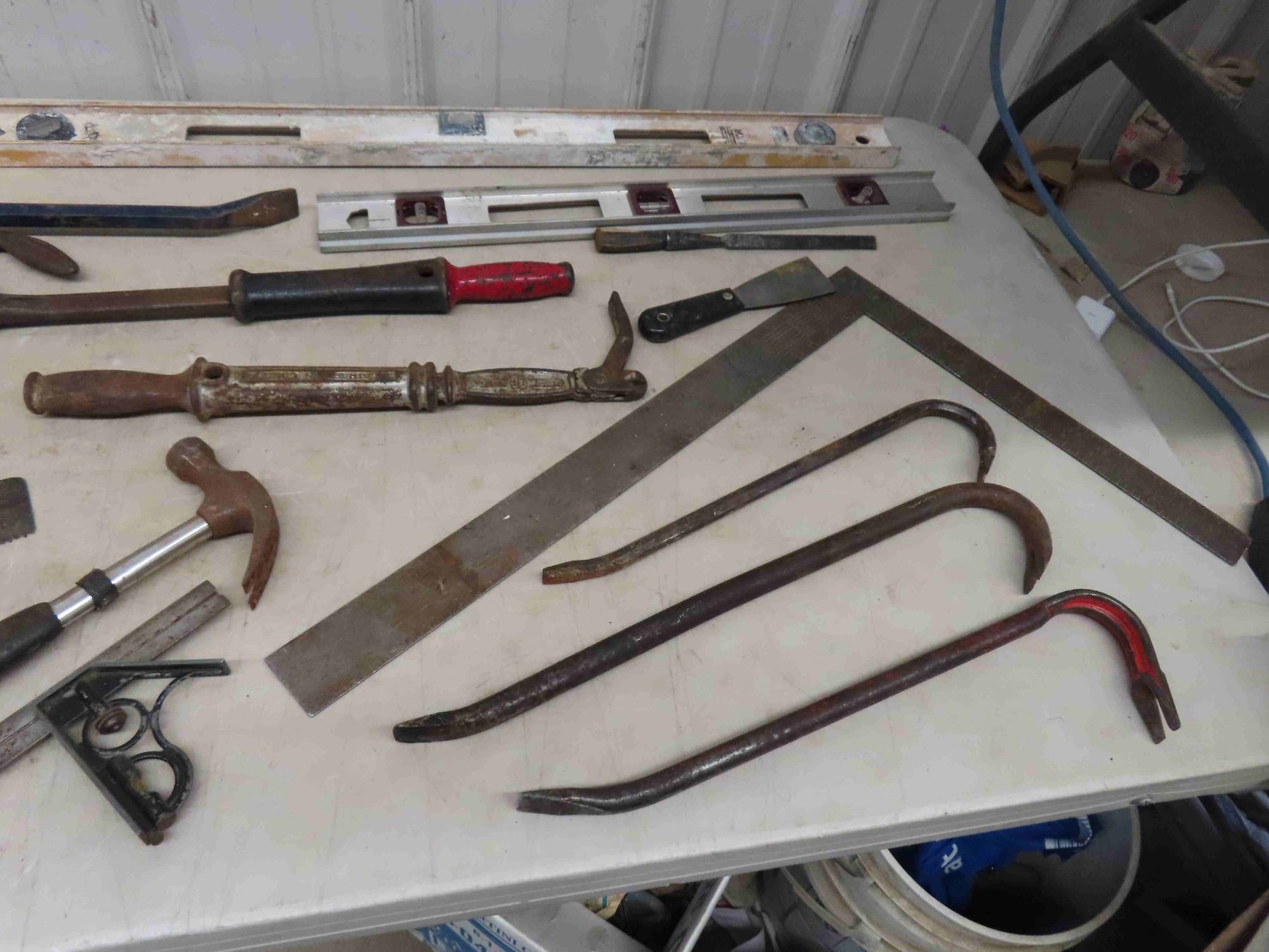 Prybars, Levels, Saws, Nail Pullers, Hammer, Long Heavy Pry Bar, Plus More