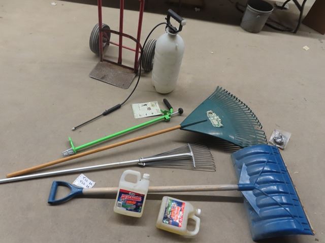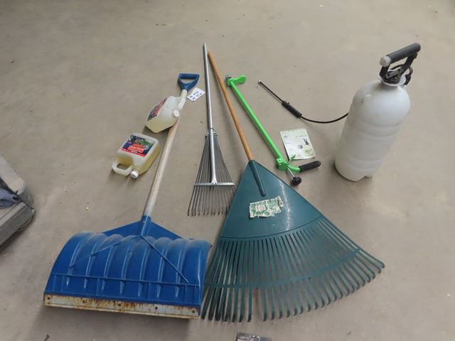 Push Shovel, 2 Rakes, Dandelion picker, Bottle Sprayer, 4 Litre Mosquito Fogger