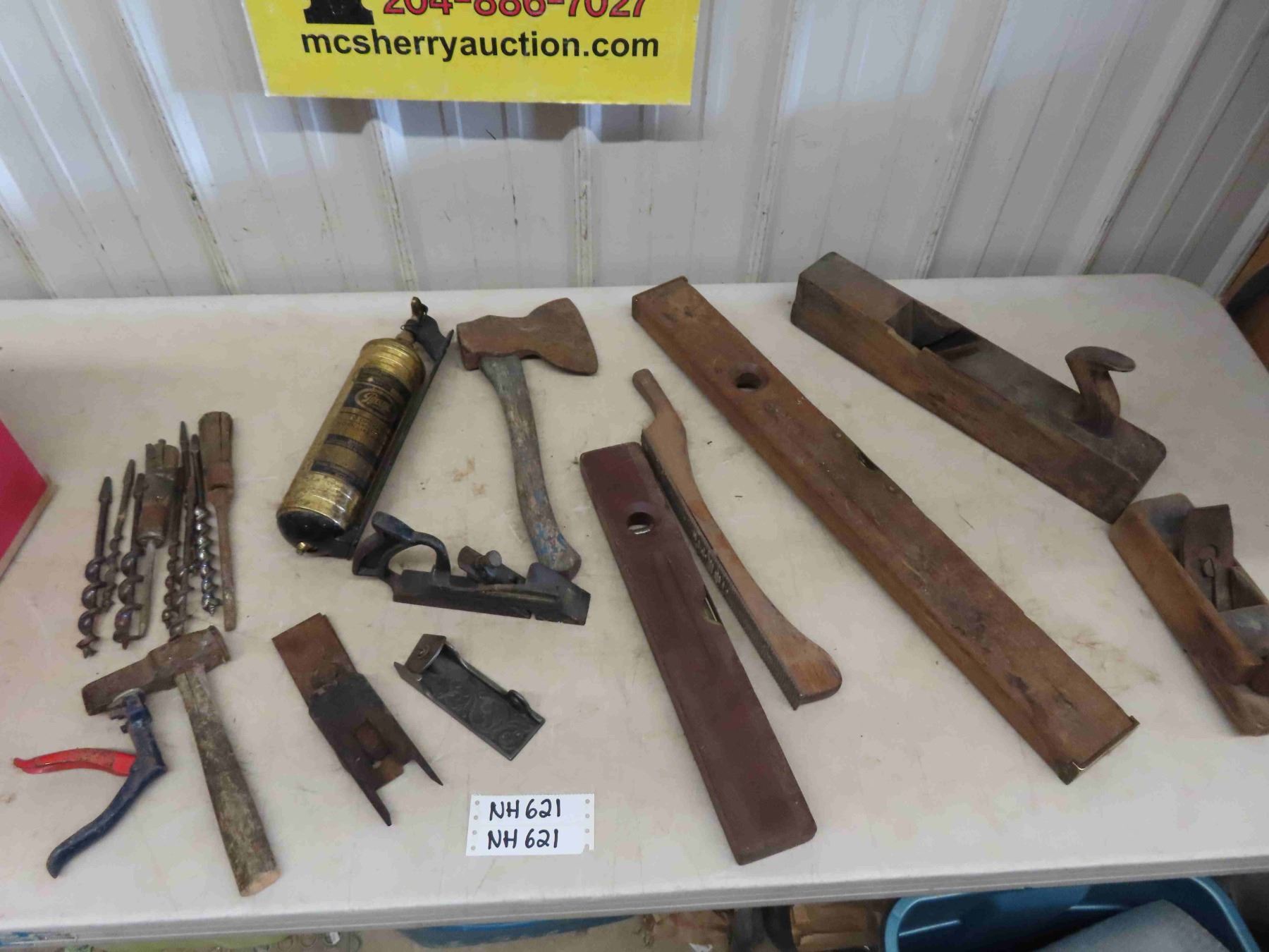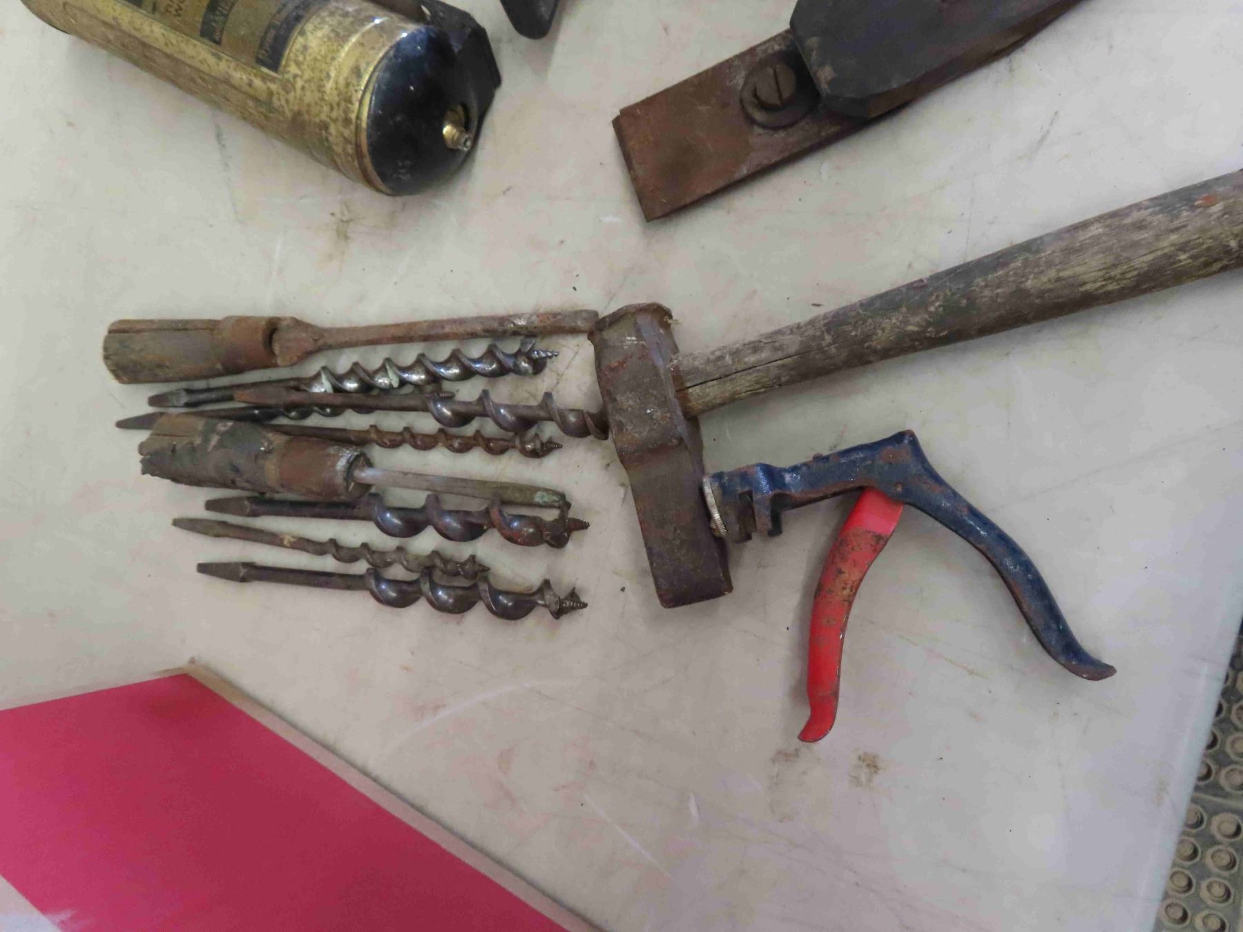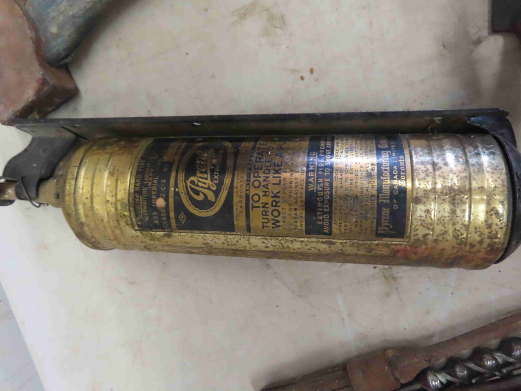 Pyrene Brass Fire Extinguisher, Wood Levels, Vintage Planers, Aiger Bits, Hatchet