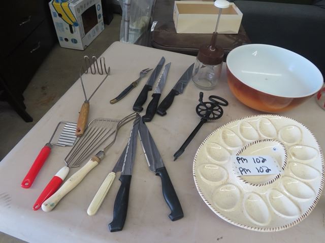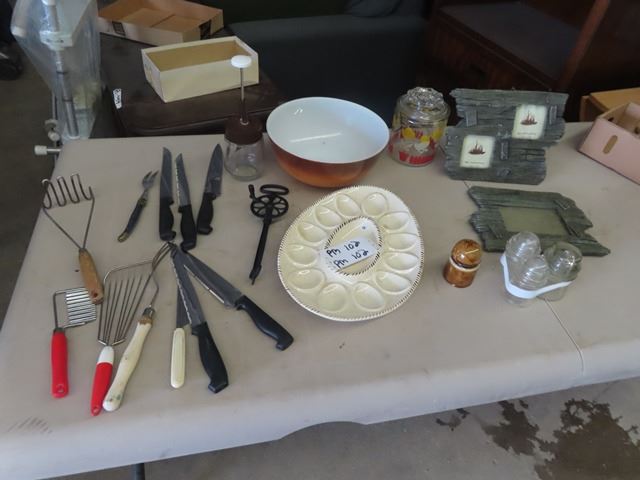 Pyrex Mixing Bowls, Utensils, Picture Frame Plus More!