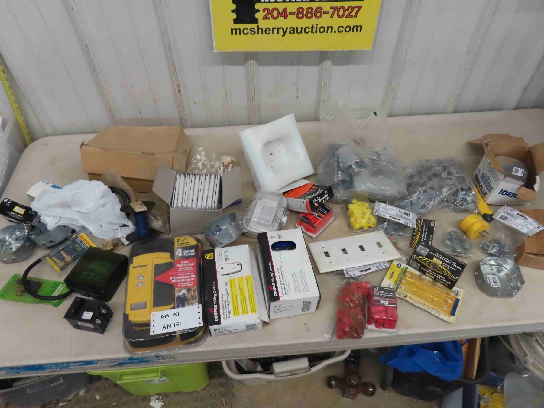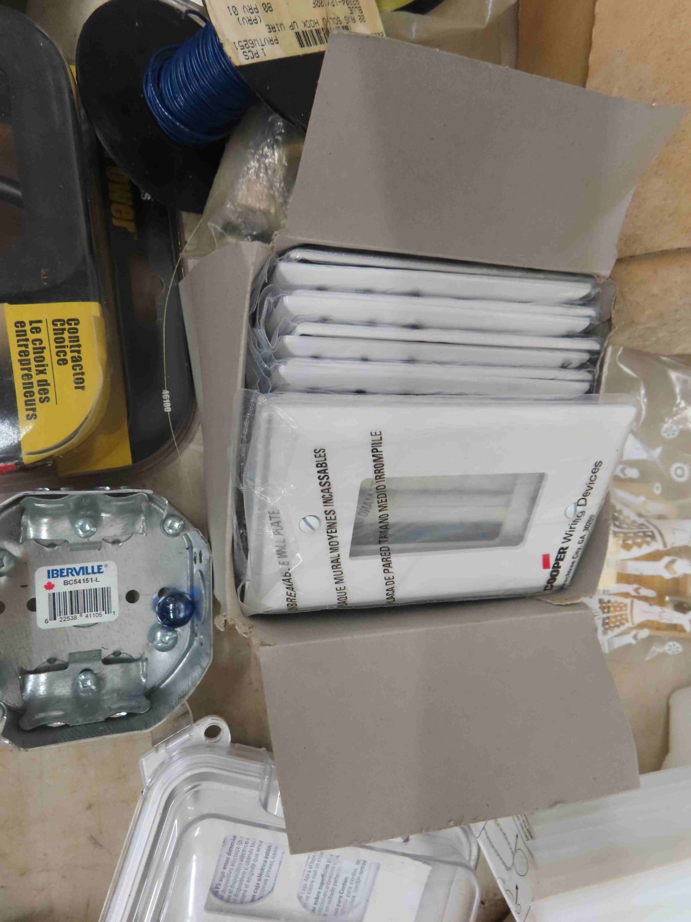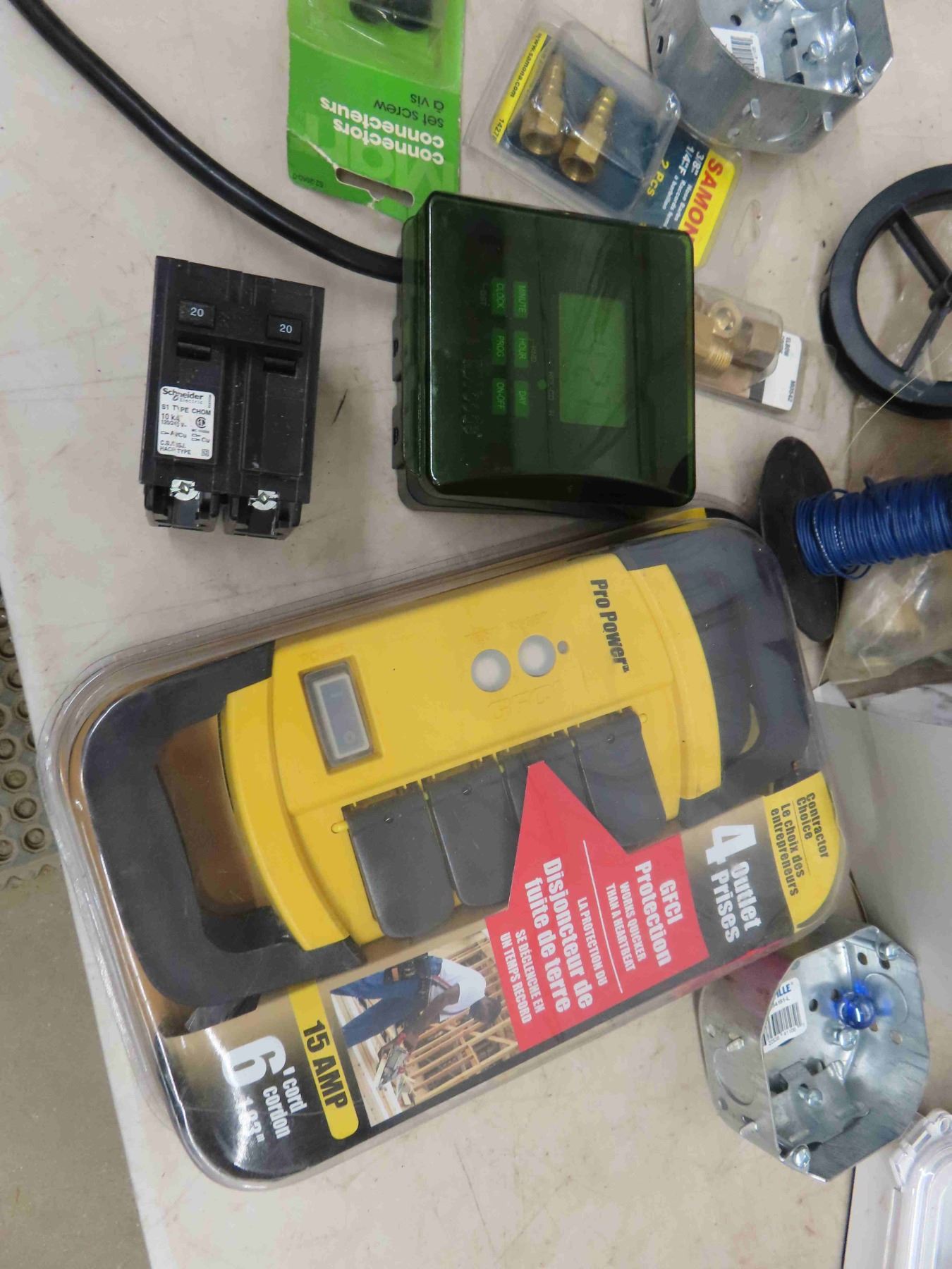 Quantity of Electrical Supplies ; Timer, Power Bar, Plugs, Switches, Cover Plates, Box Connectors, Clamps, Marretts