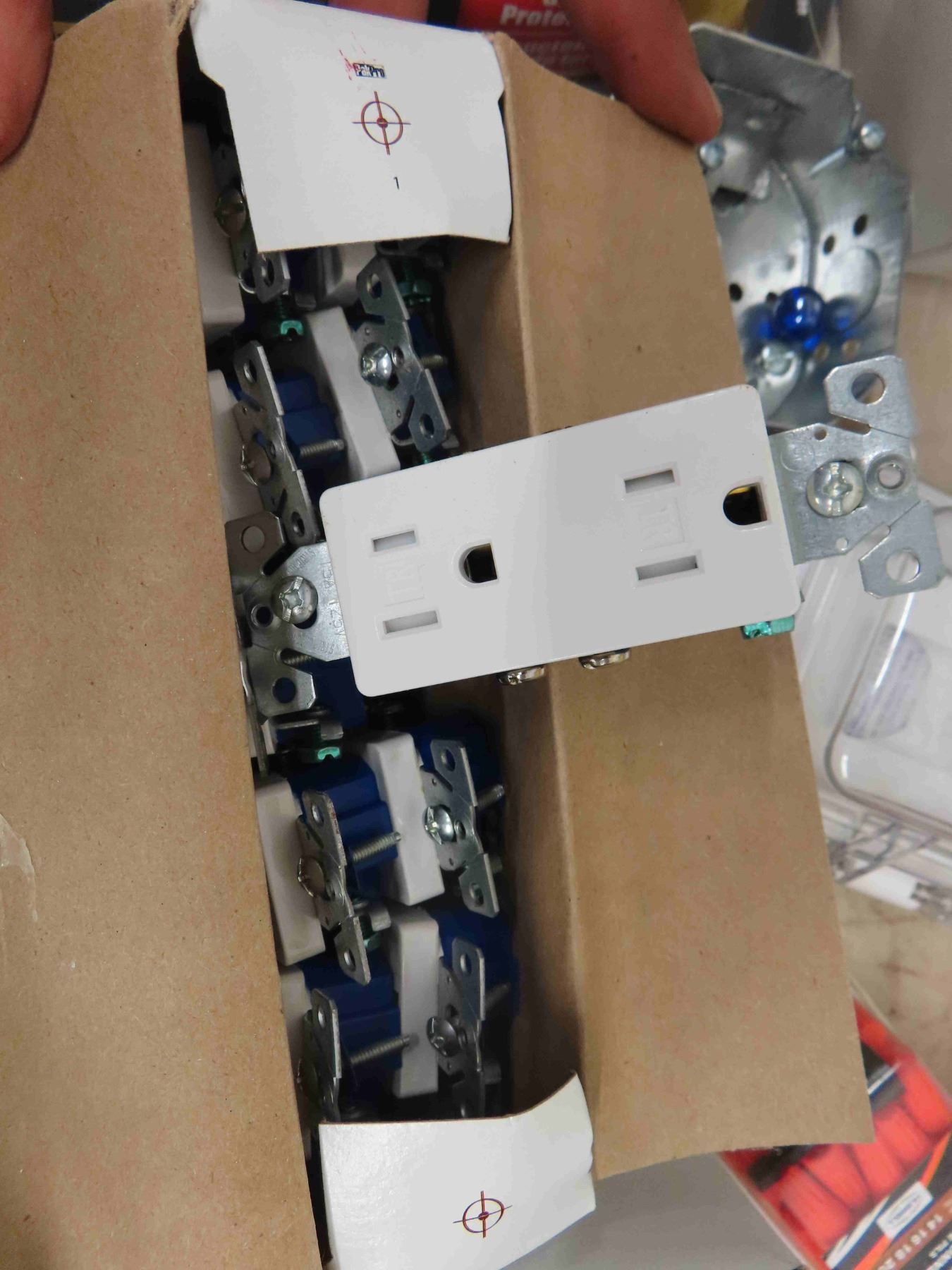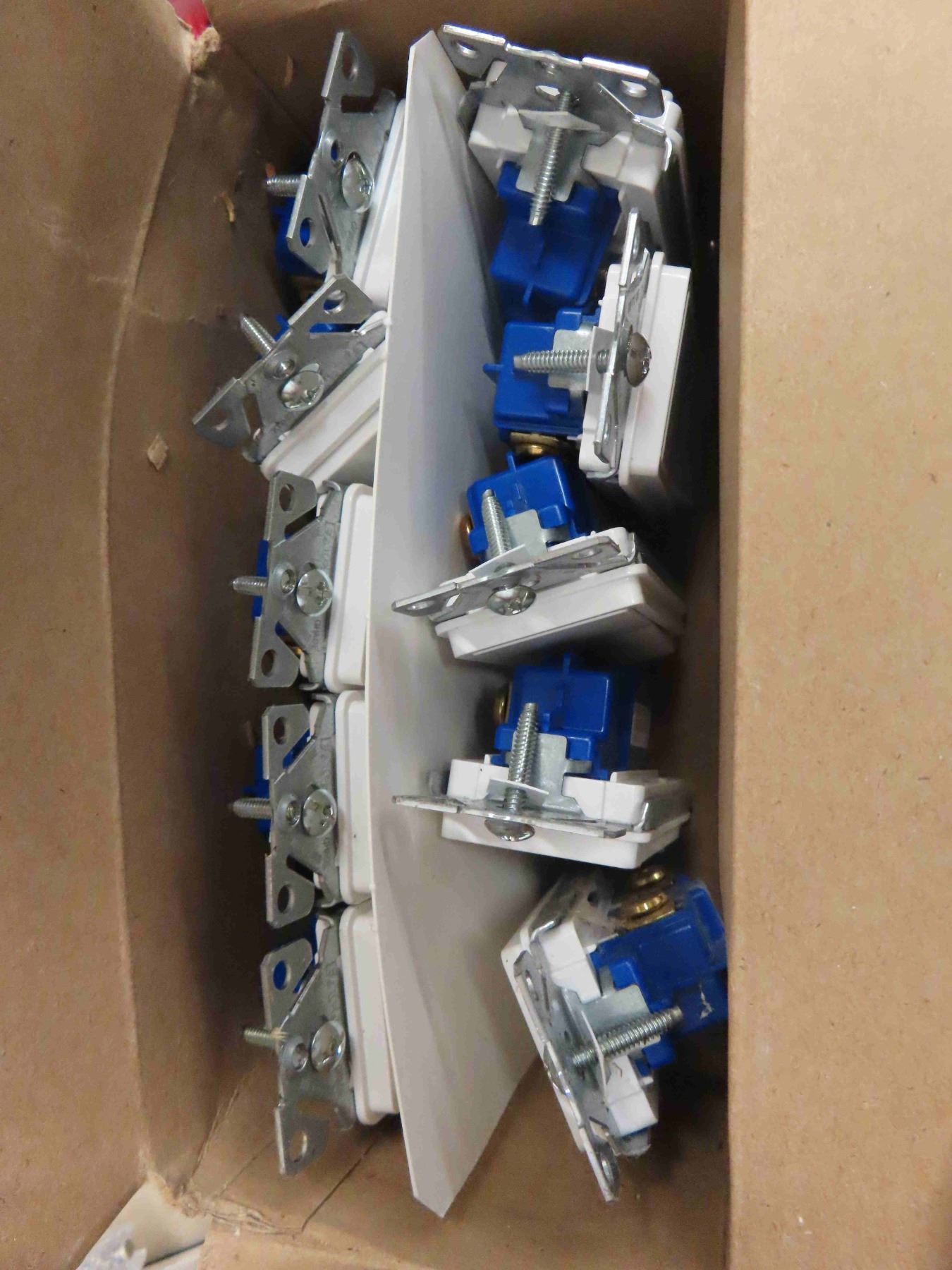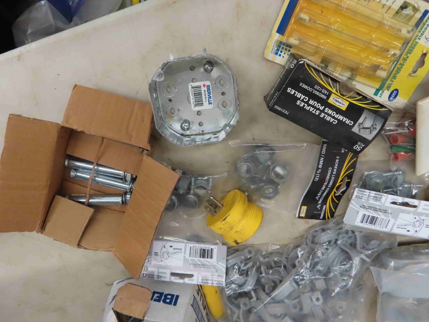 Quantity of Electrical Supplies ; Timer, Power Bar, Plugs, Switches, Cover Plates, Box Connectors, Clamps, Marretts