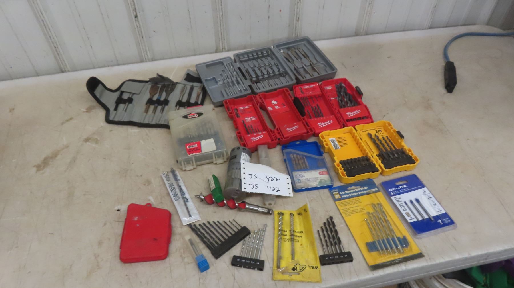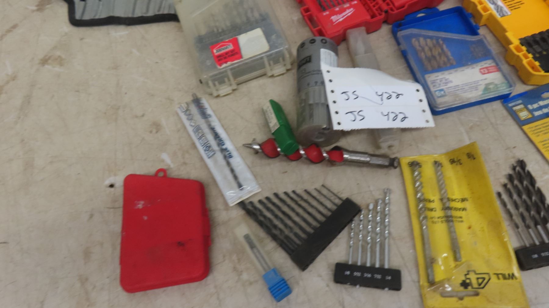 Quantity of Various Drill Bits : Dewalt, Milwaukee, Jobmate, Mastercraft