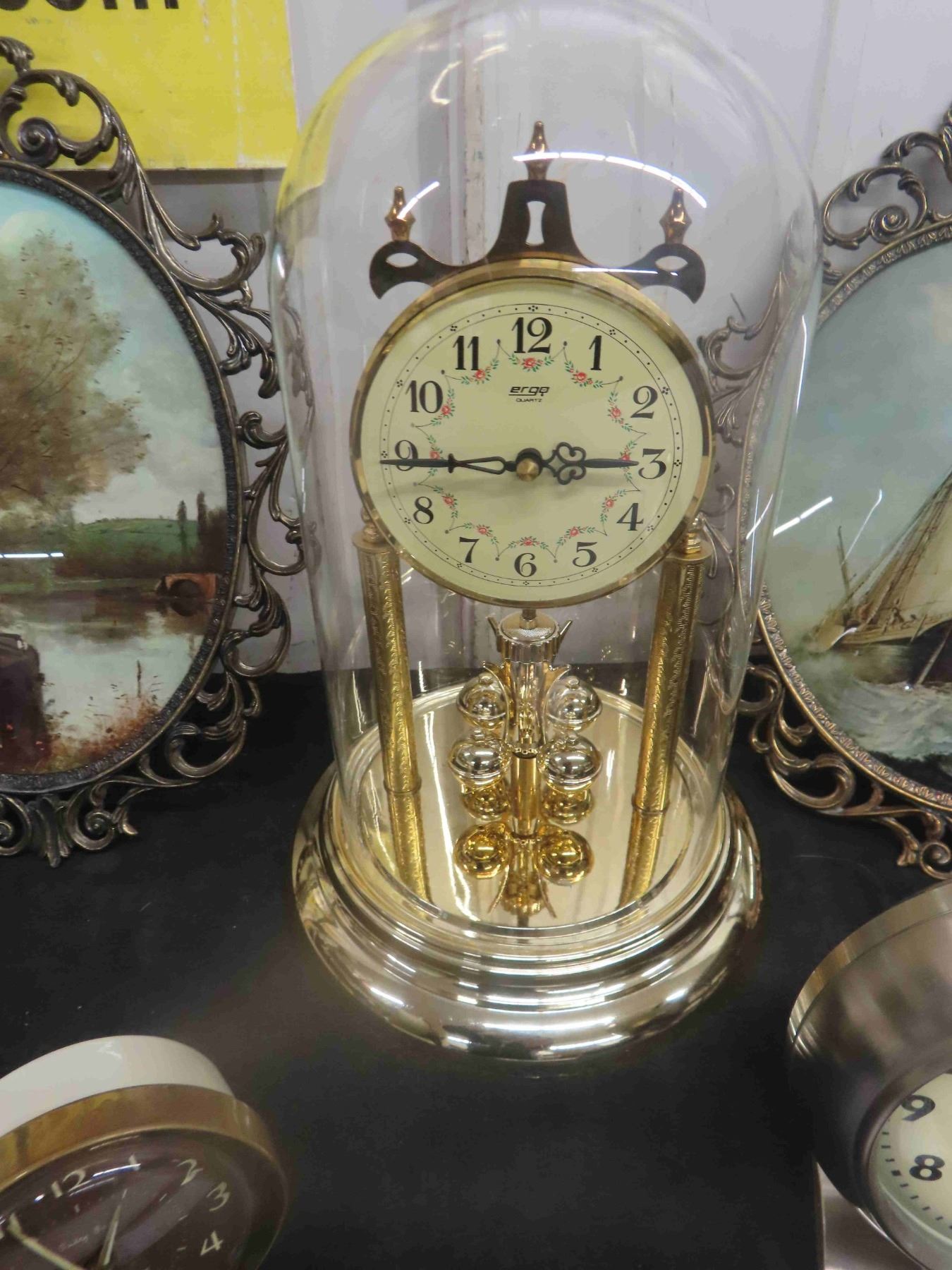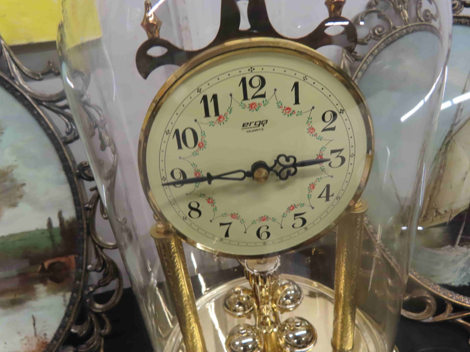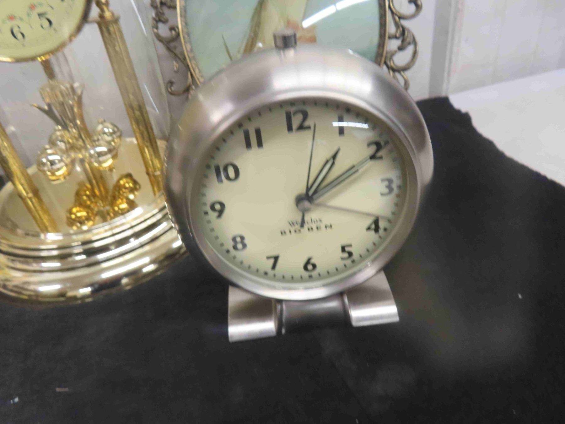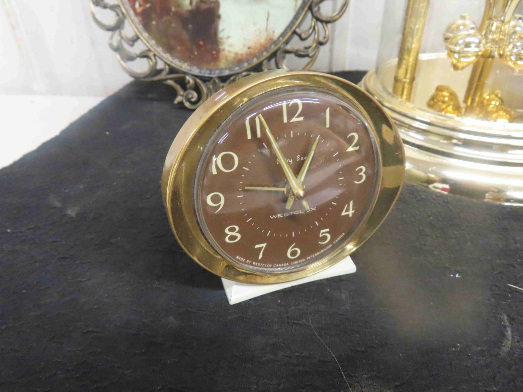 Quarts Dome Anniversary Mantle Clock , 2 Westclox Alarm Clock Big Ben, Baby Ben Plus 2 Convex Glass Oval Pictures Quite Nice