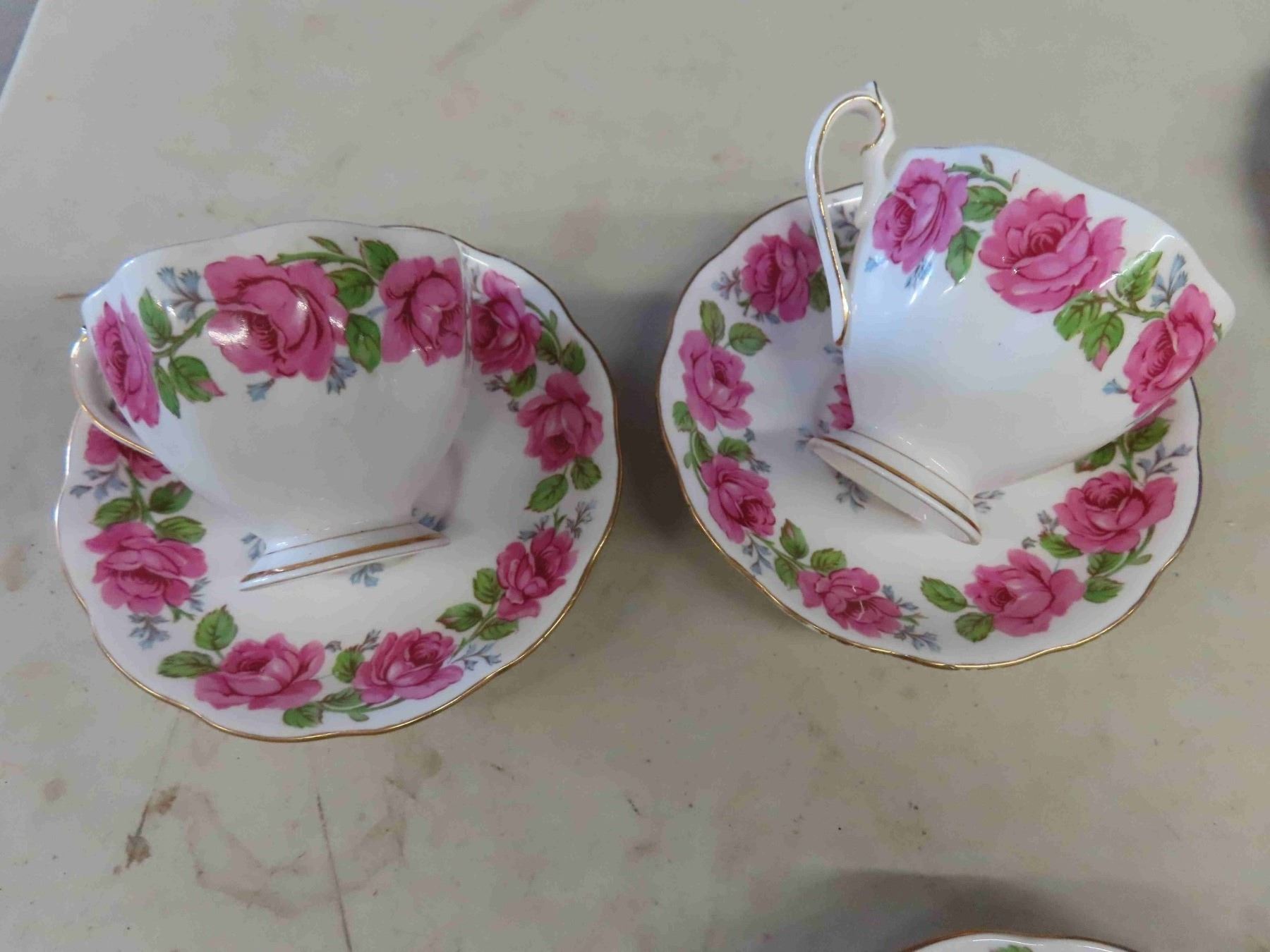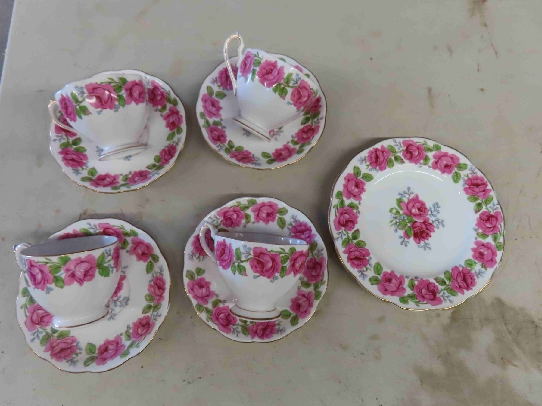 Queen Anne - Lady Alexander Rose - 4 Cups + Saucers + 3 Plates