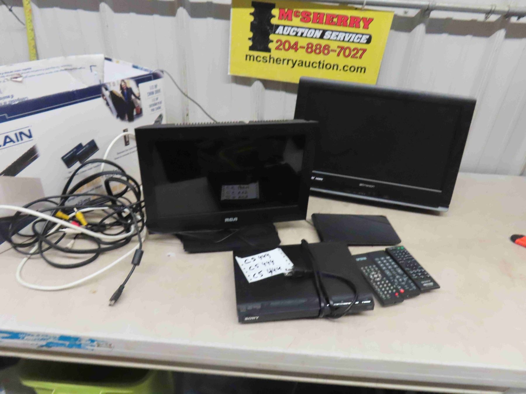 RCA 15" LED TV, Emerson 19" TV with Wall Mount, Sony DVD Player - All Have Remote