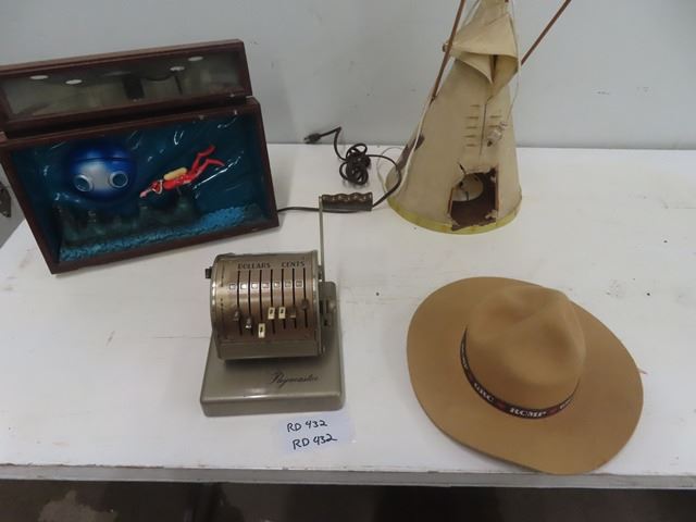 (RD) Working Light Up Scuba Scene & Paymaster Adding Machine , Tee Pee Lamp & Replica RCMP Hat