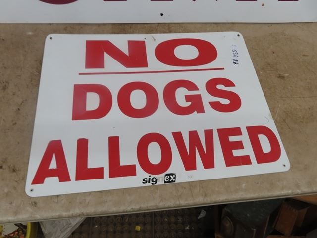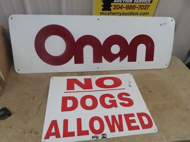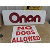 (RE) Onan Metal Sign 16" X 48" & No Dogs Metal Sign 12" x 24"