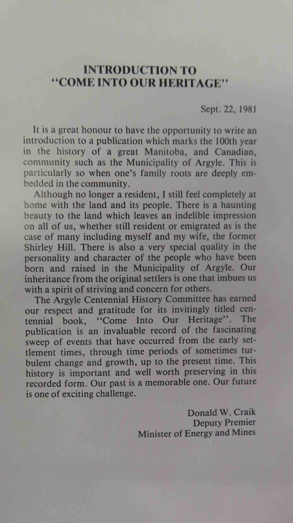 RM of Argyle 1882-1982 732 Page Local Manitoba History Hardcover Book 'Come into Our Heritage'