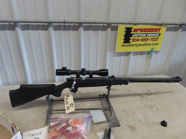 ROB34 Knight In Line 50 Cal Black Powder Rifle w Bushnell Scope Composite Stock, New Condition S#051