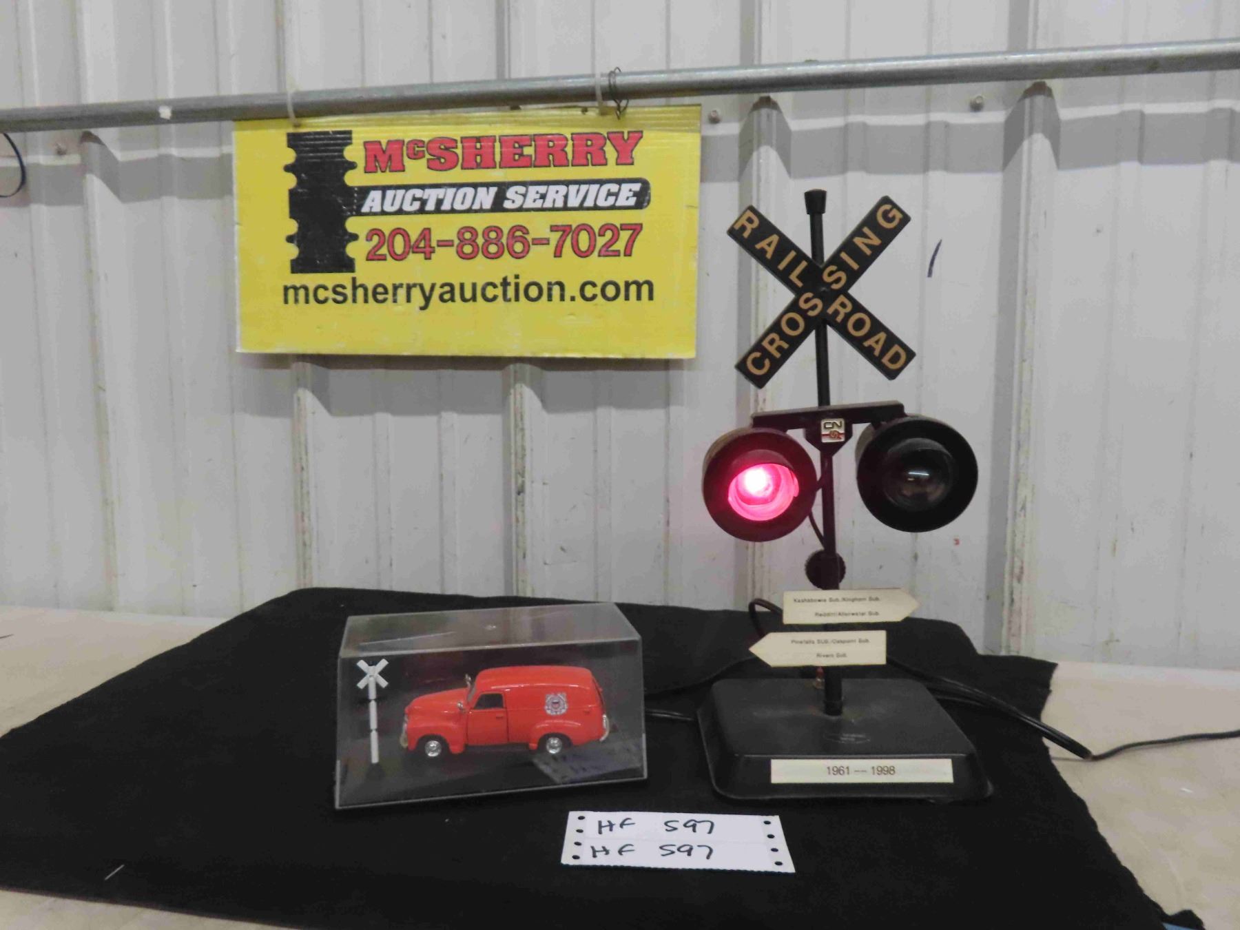 Railway Crossing Display Lights Up + Sound , Diecast Panel Van Chevy 54