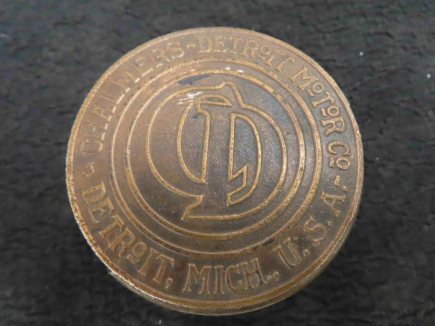 Rare Antique Chalmers Motor Company Brass Radiator Cap Detroit, Mich. USA -