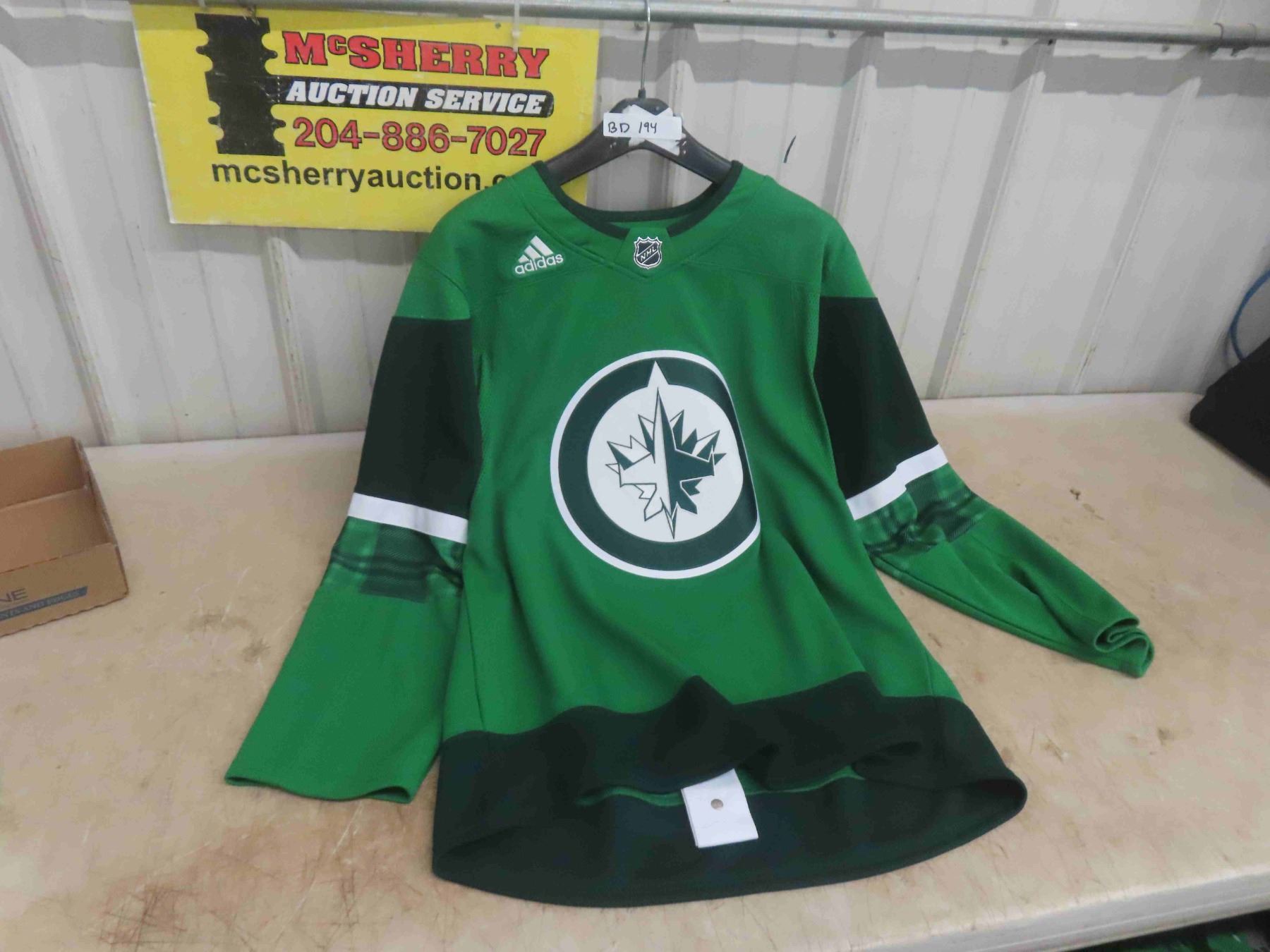 Rare ! Green Winnipeg Jets Size 50 Authentic Pro Warm Up Hockey Jersey for St Patrick Game Day
