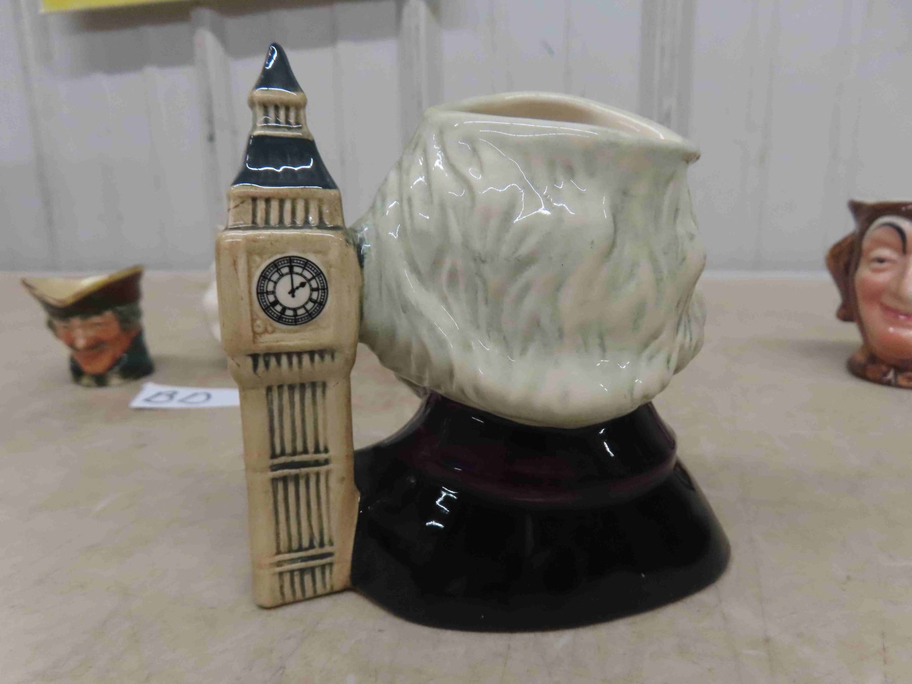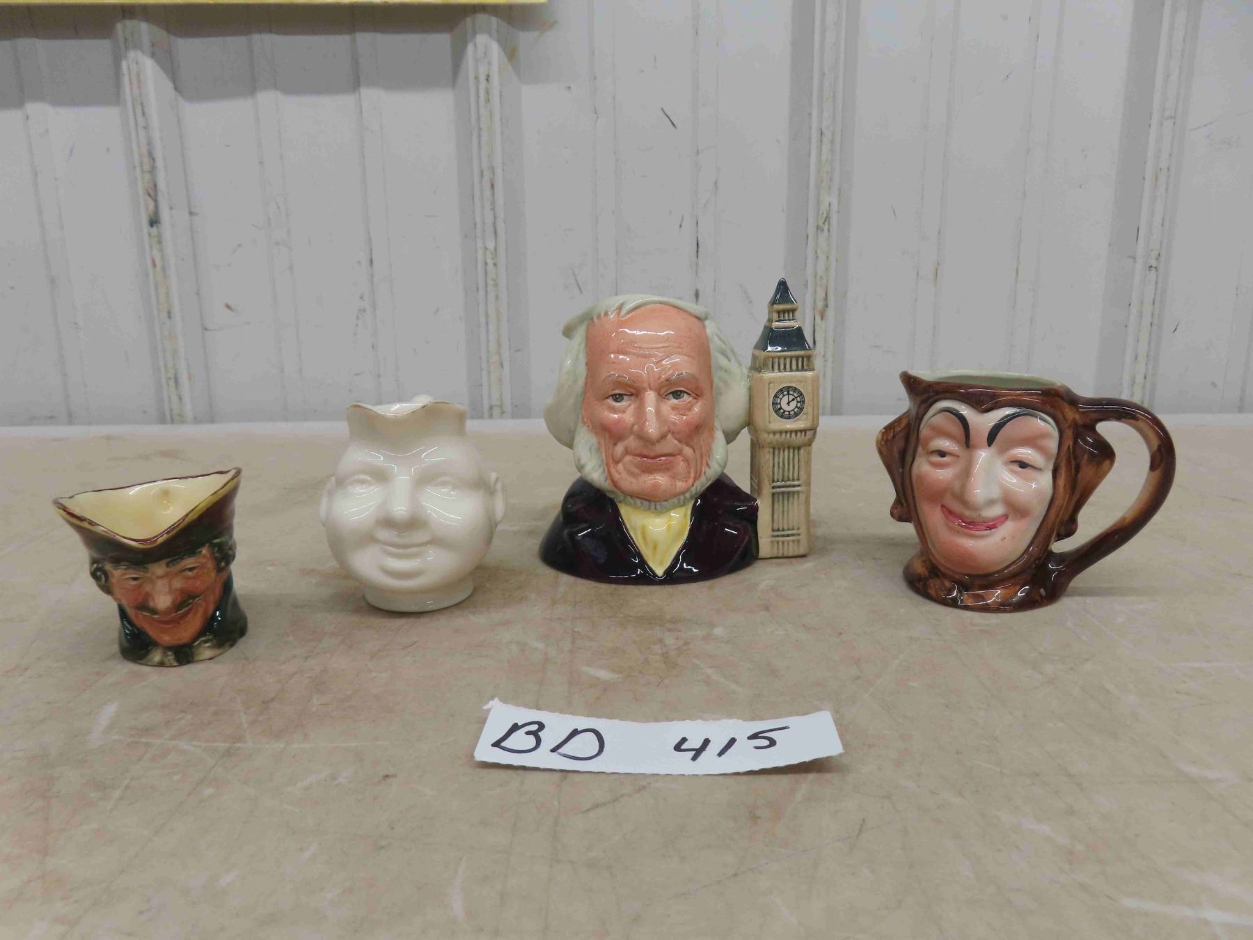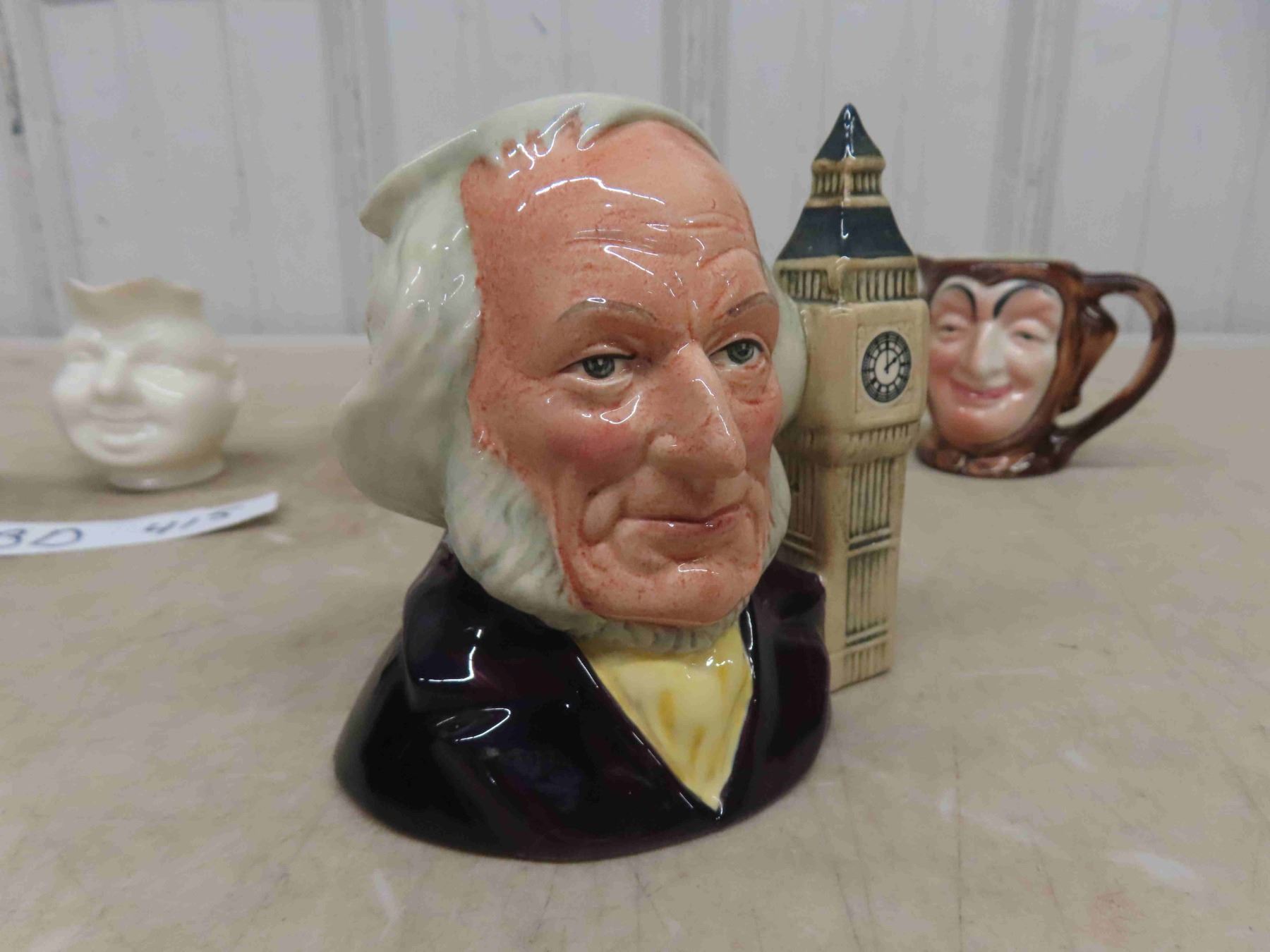 Rare Royal Doulton Mug of Founder John Doulton ( Was Available to Club Members Only ) , 3 Other English Character Mugs , Royal Crown Derby Coronation Dish -All Very Good Condition