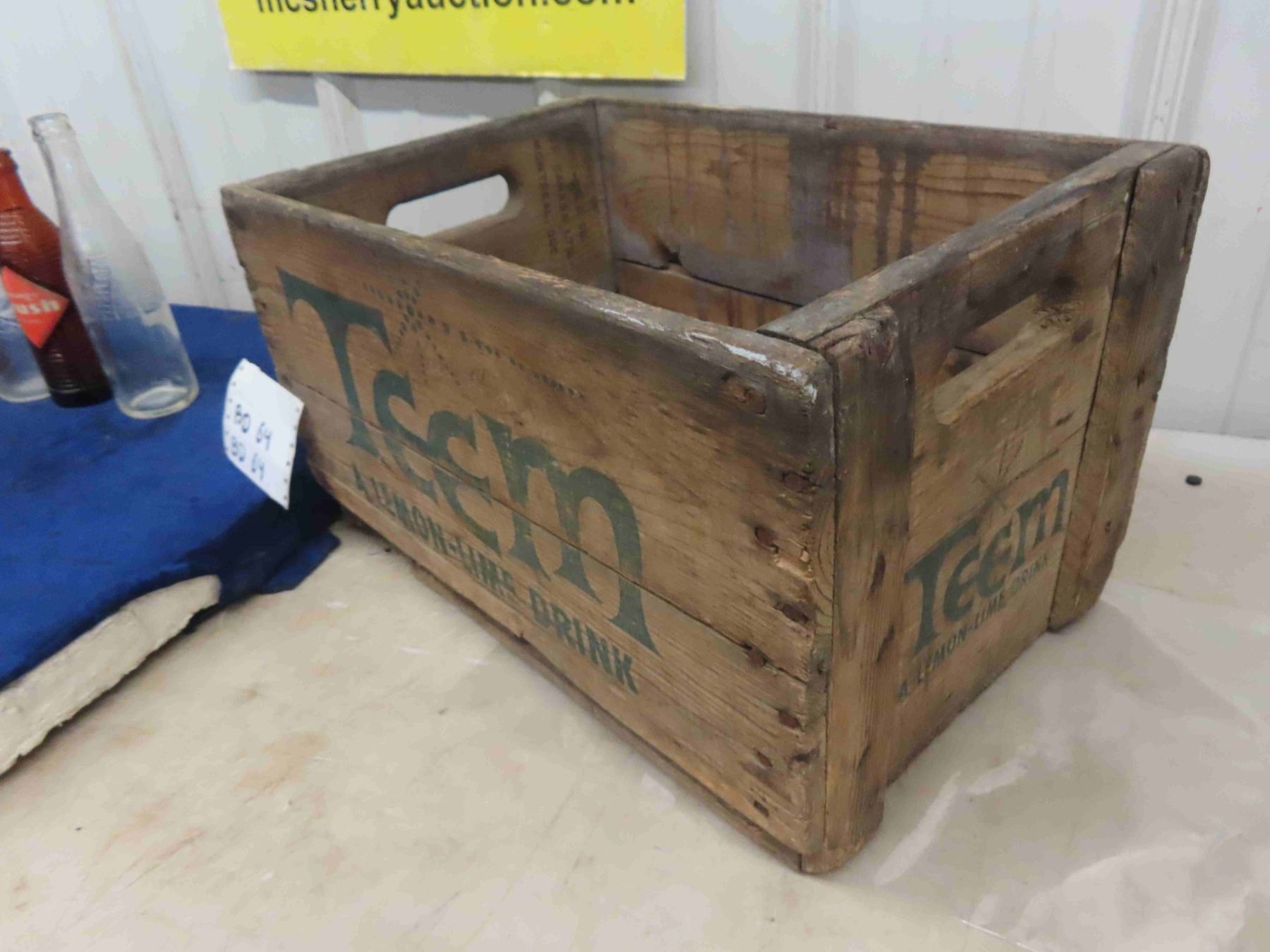 Rare Vintage Teem Lemon Lime Drink Wooden Crate + Vintage Coke, Pepsi, 2