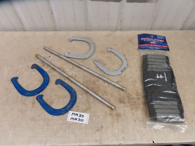 Ready for Cottage Season ; Metal Horse Shoe Game with 4 Shoes + 2 Posts - Includes Football Blocking Vest