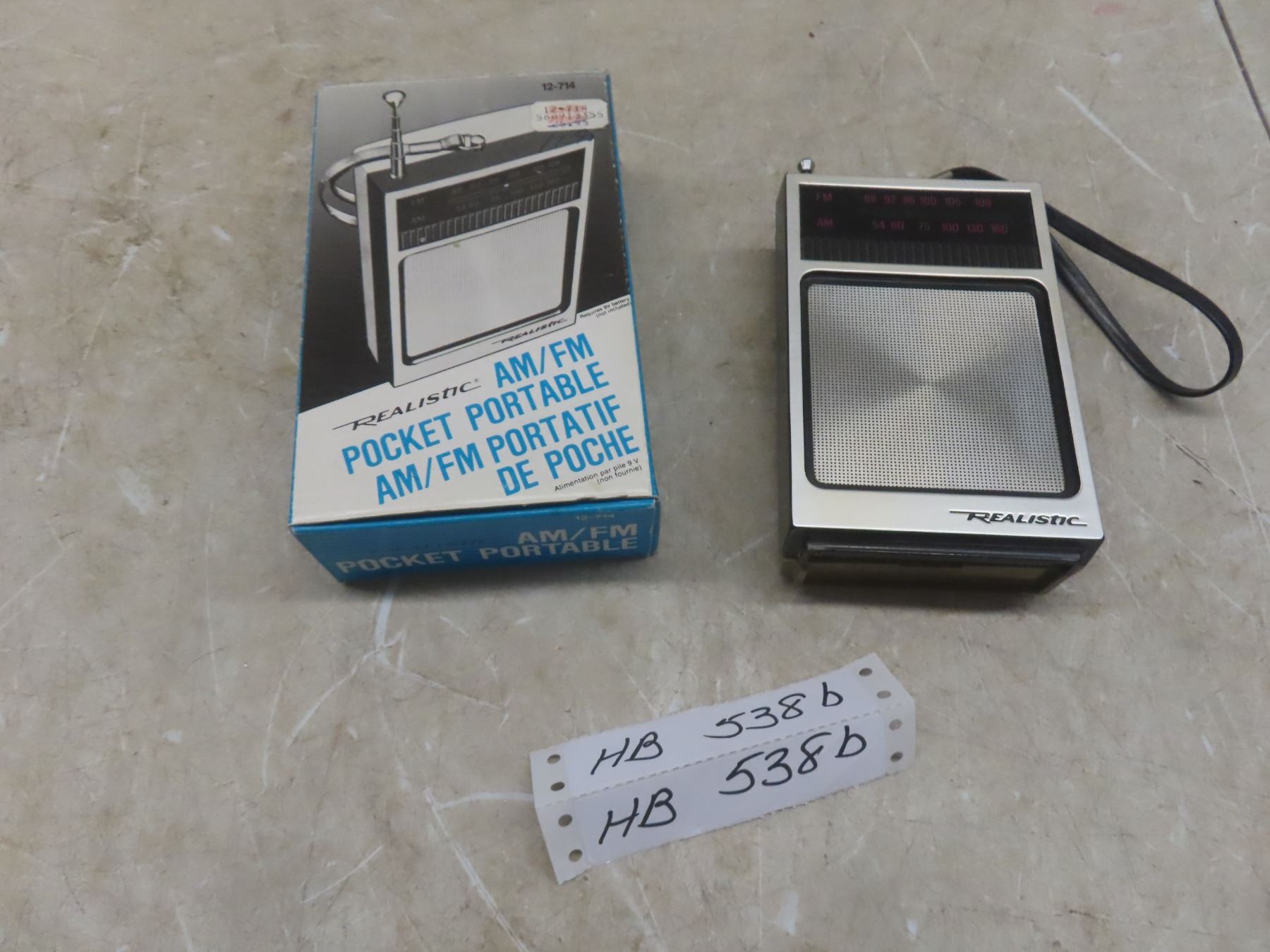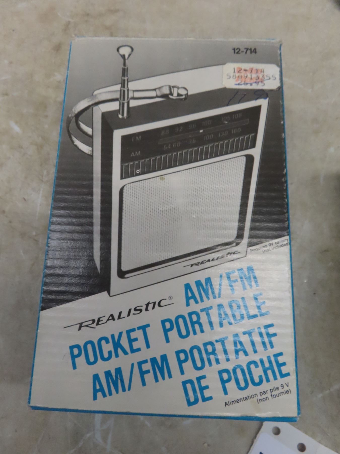 Realistic AM/FM Pocket Transistor Radio With Original Box.