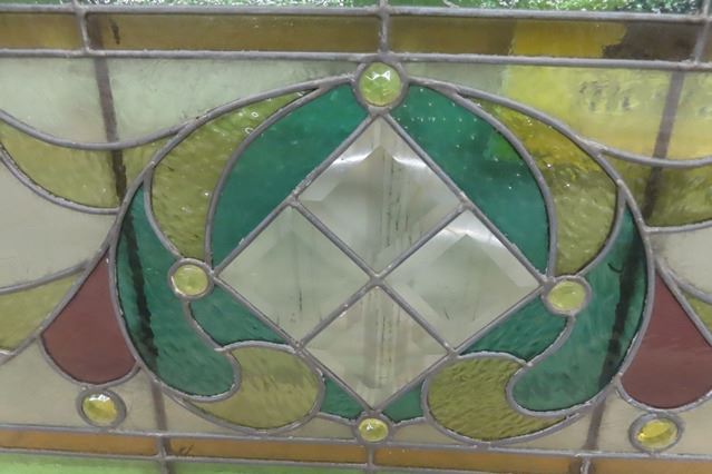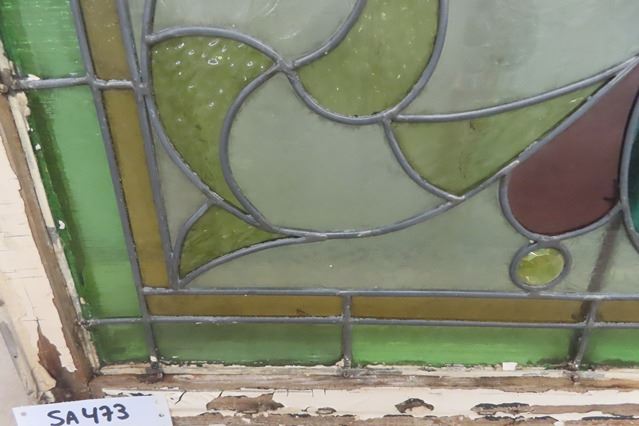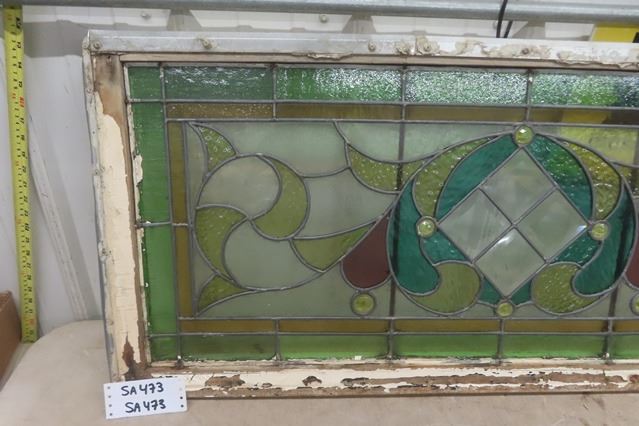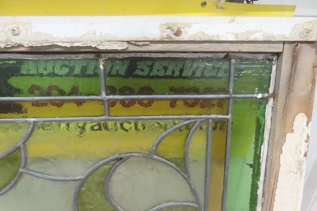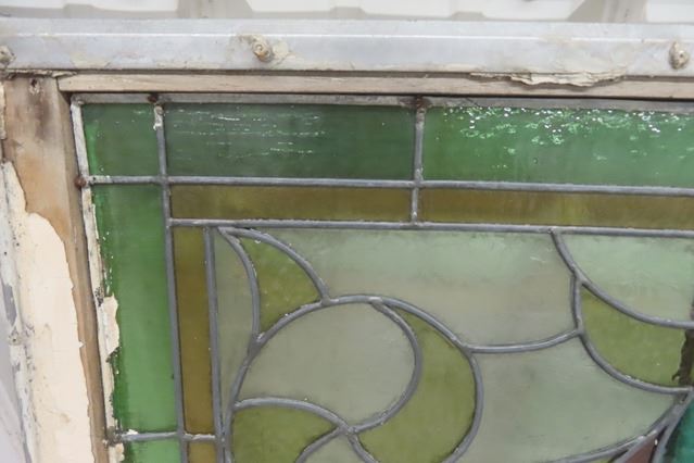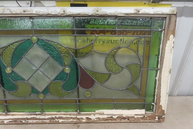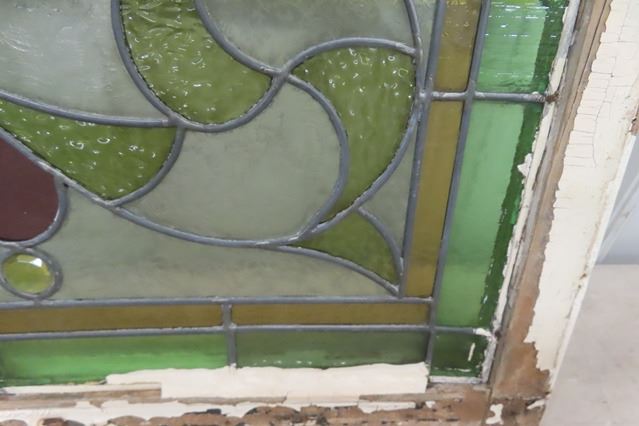 Really Nice + Old Stained Glass Window with Wooden Framen19.5"×43.5"