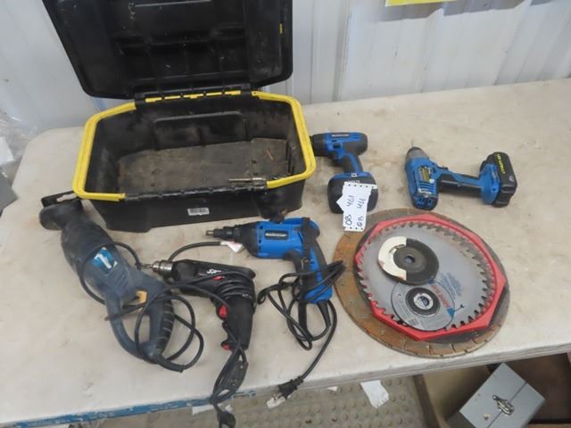 Reciprocating Saw - Works but Sometimes not Right at Base, Drill , Drywall Gun, Circular Saw Blades, Tool Box, Drill Bits