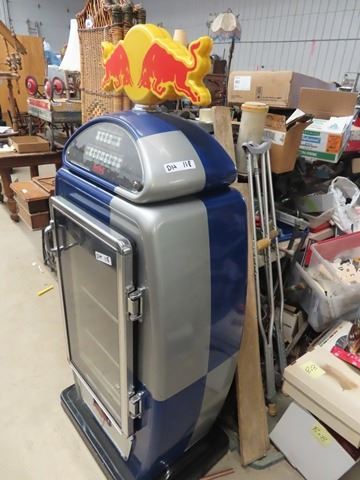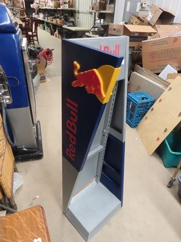 Red Bull Store Fridge 60" X 26" X 17, Might Need Repair - Works tThen Doesnt, & Then Works Again, Info from Seller w Red Bull Shelf 51" x 17"X 12"