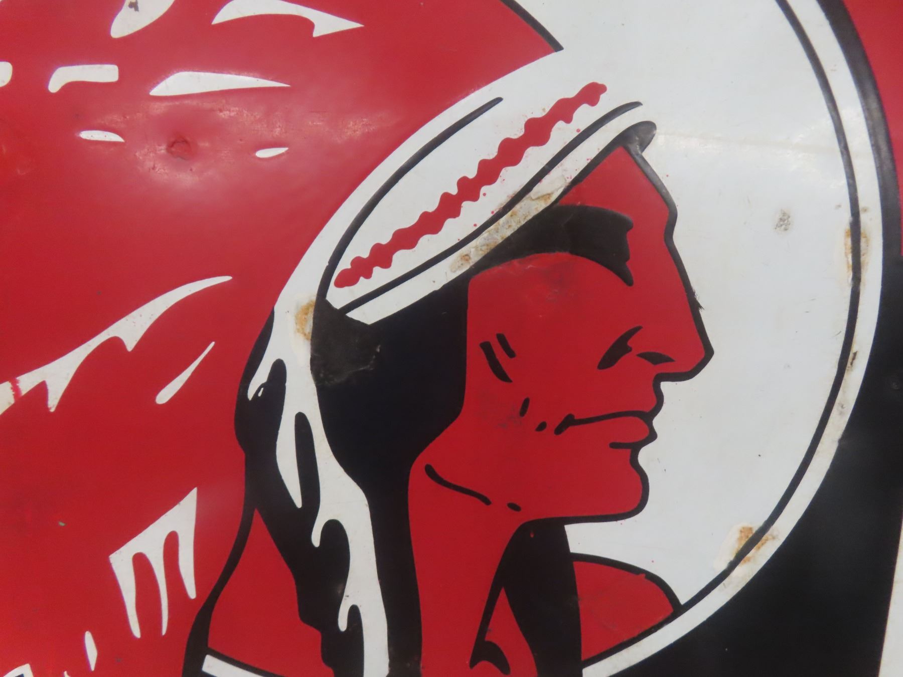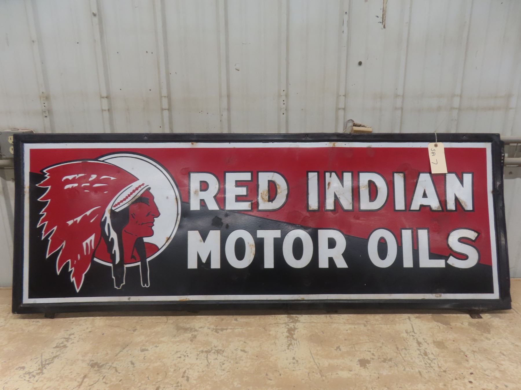 Red Indian Motor Oils Porcelain Sign- Some Chips with Touch up 72"x26"