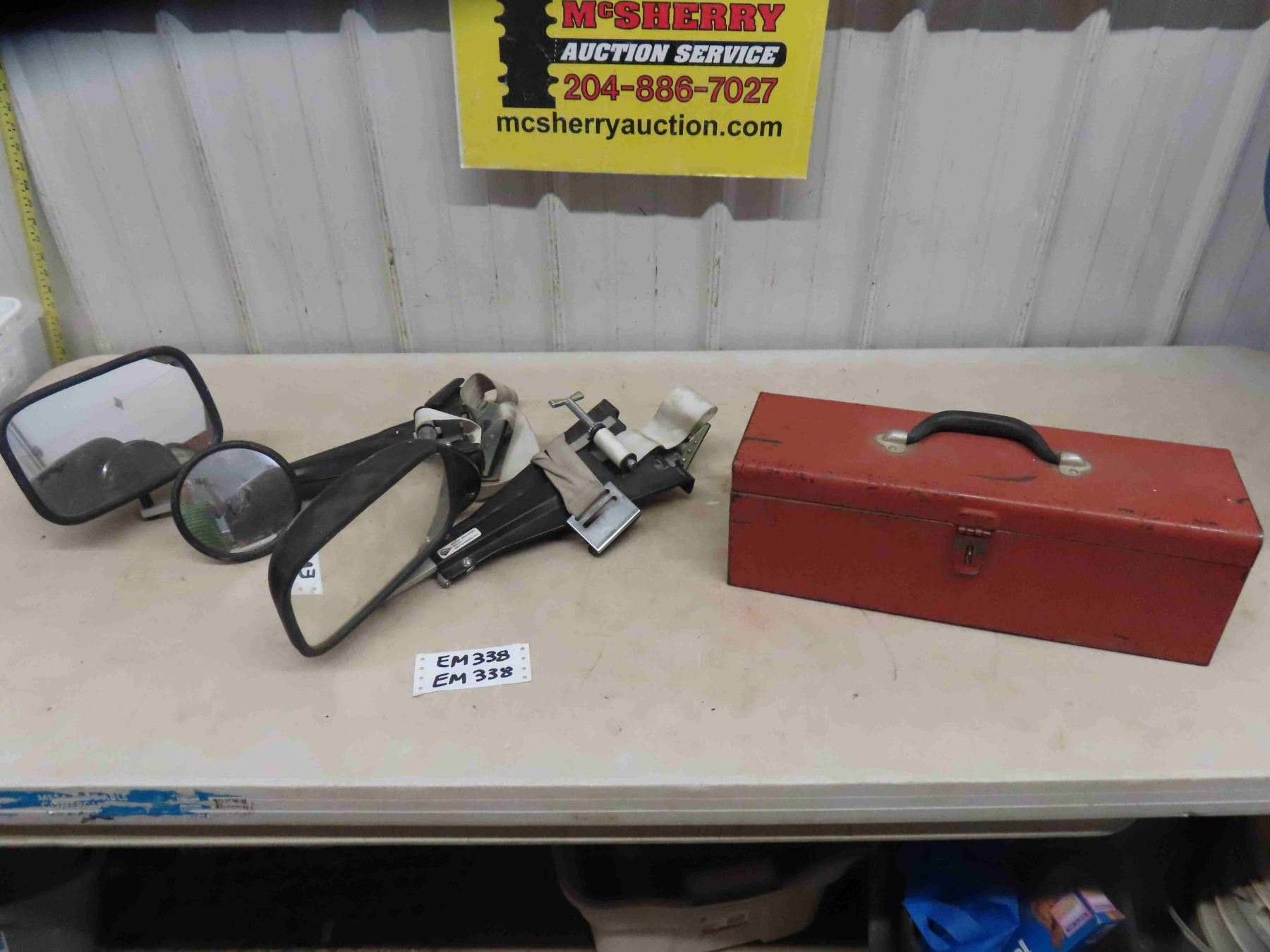 Red Tool Box + Pair of Universal Extenions Towing Mirrors