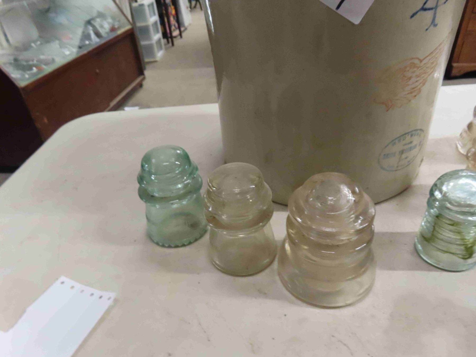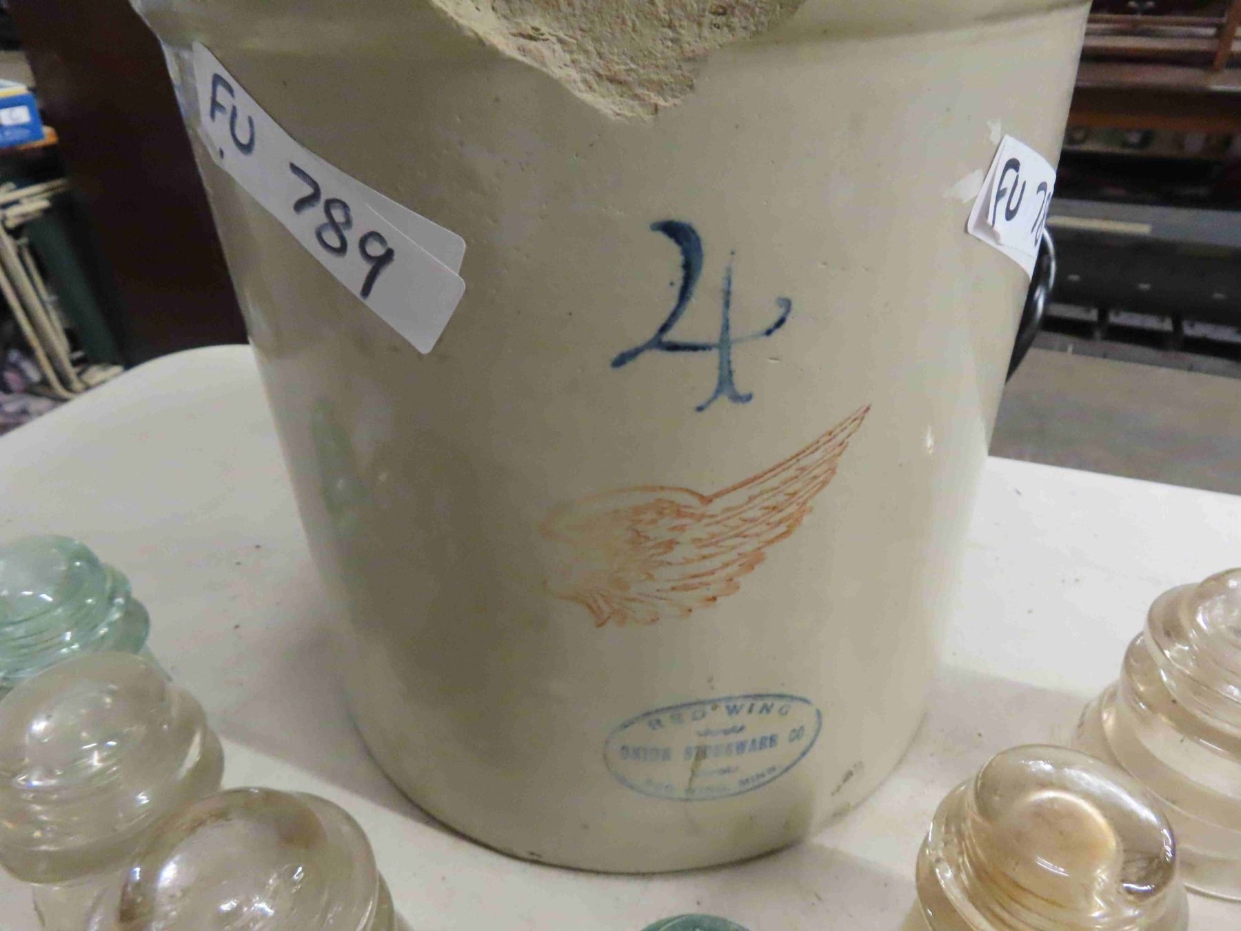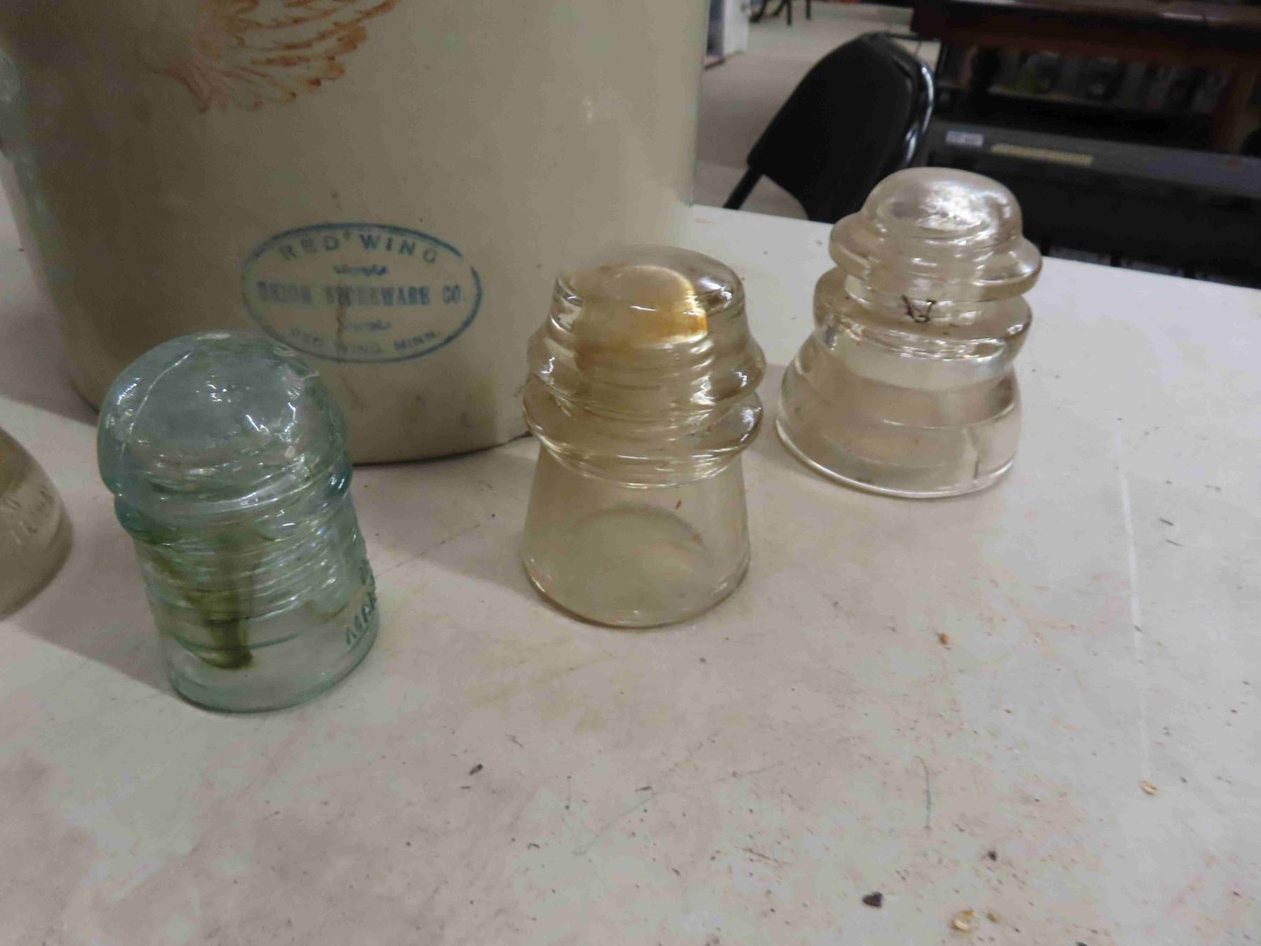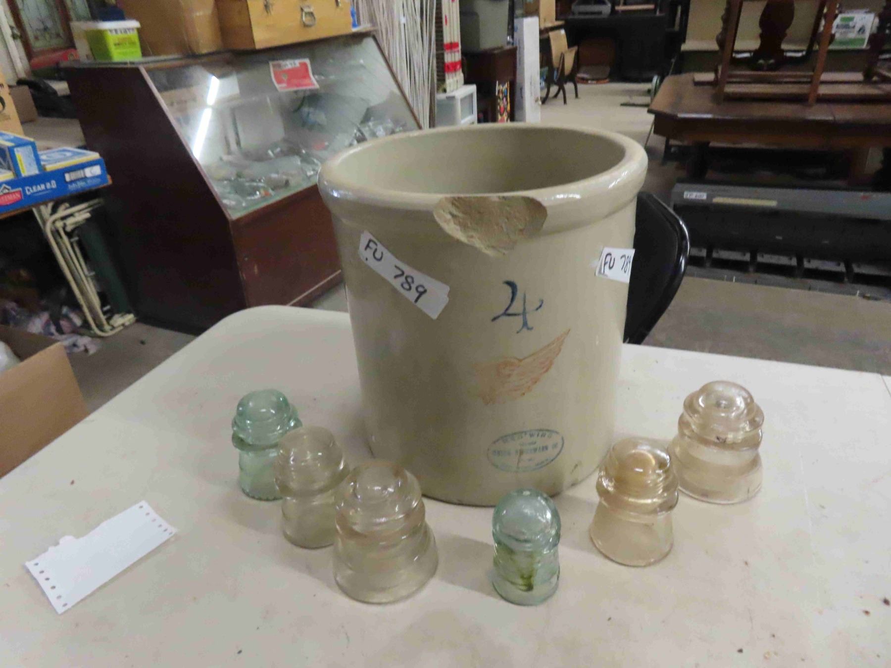 Red Wing 4 Gal Crock - chip on rim & 6 Insulators