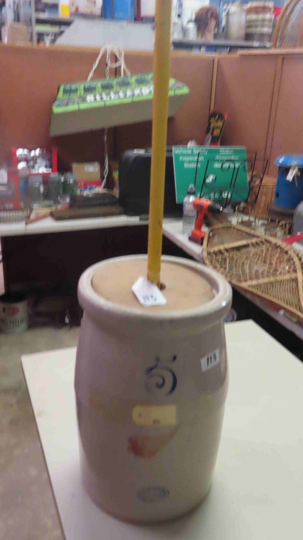 Redwing 5 Gallon Stoneware Butter Churn with Wood Top and Plunger -Small Crack on Back