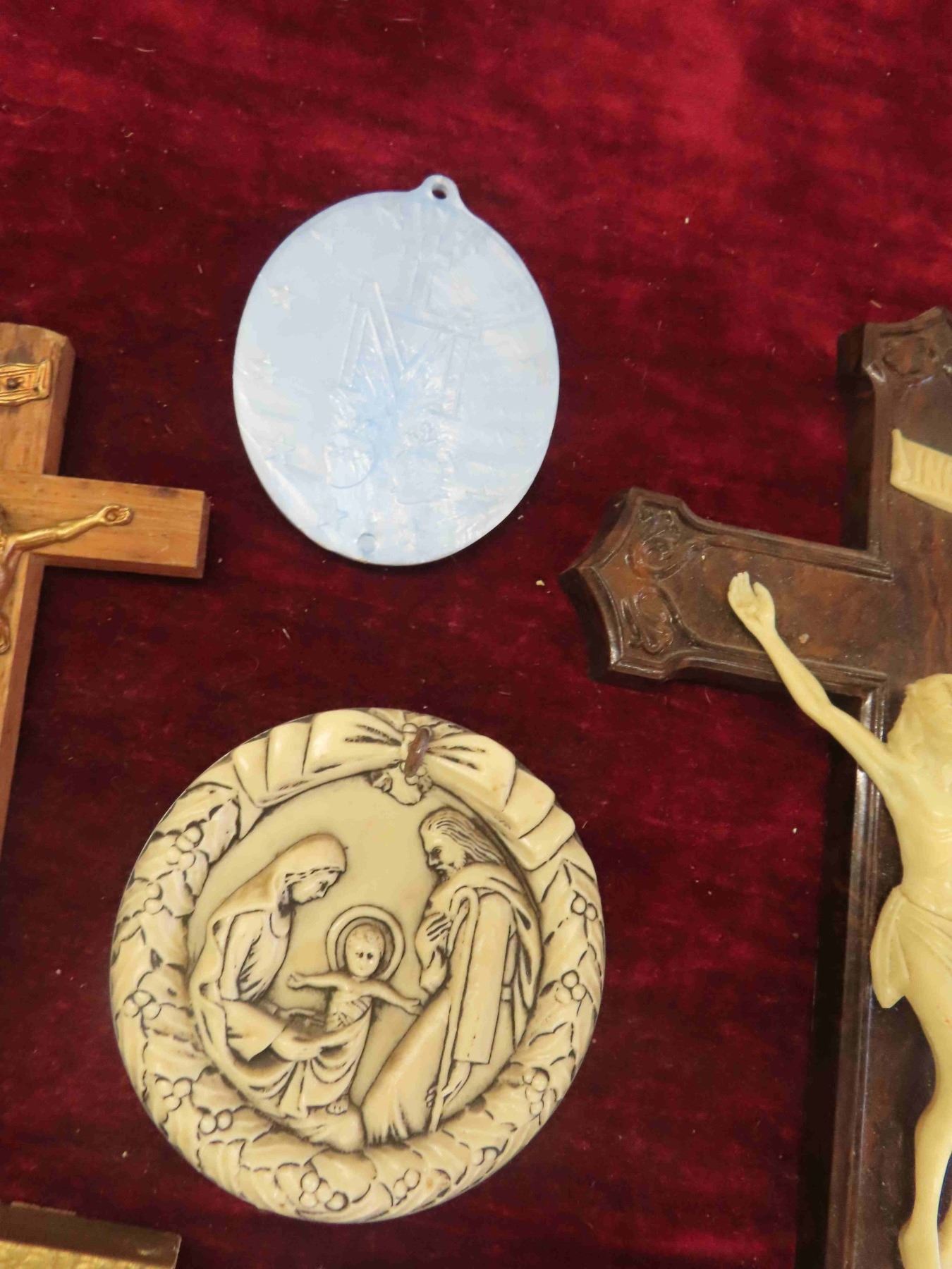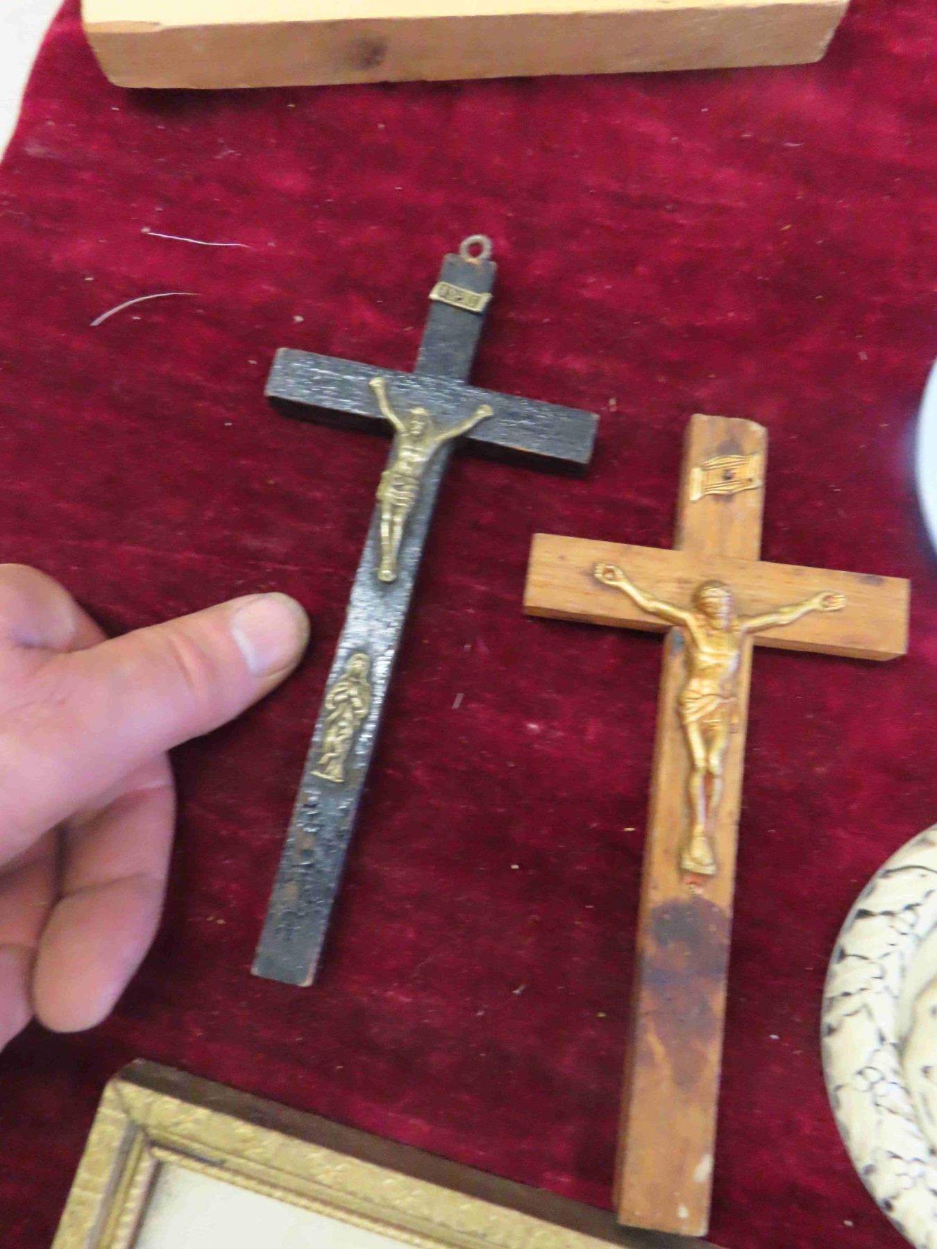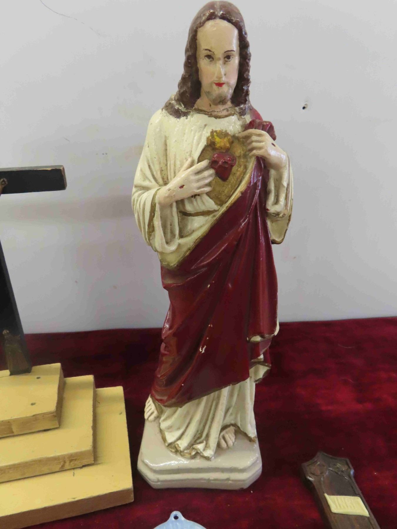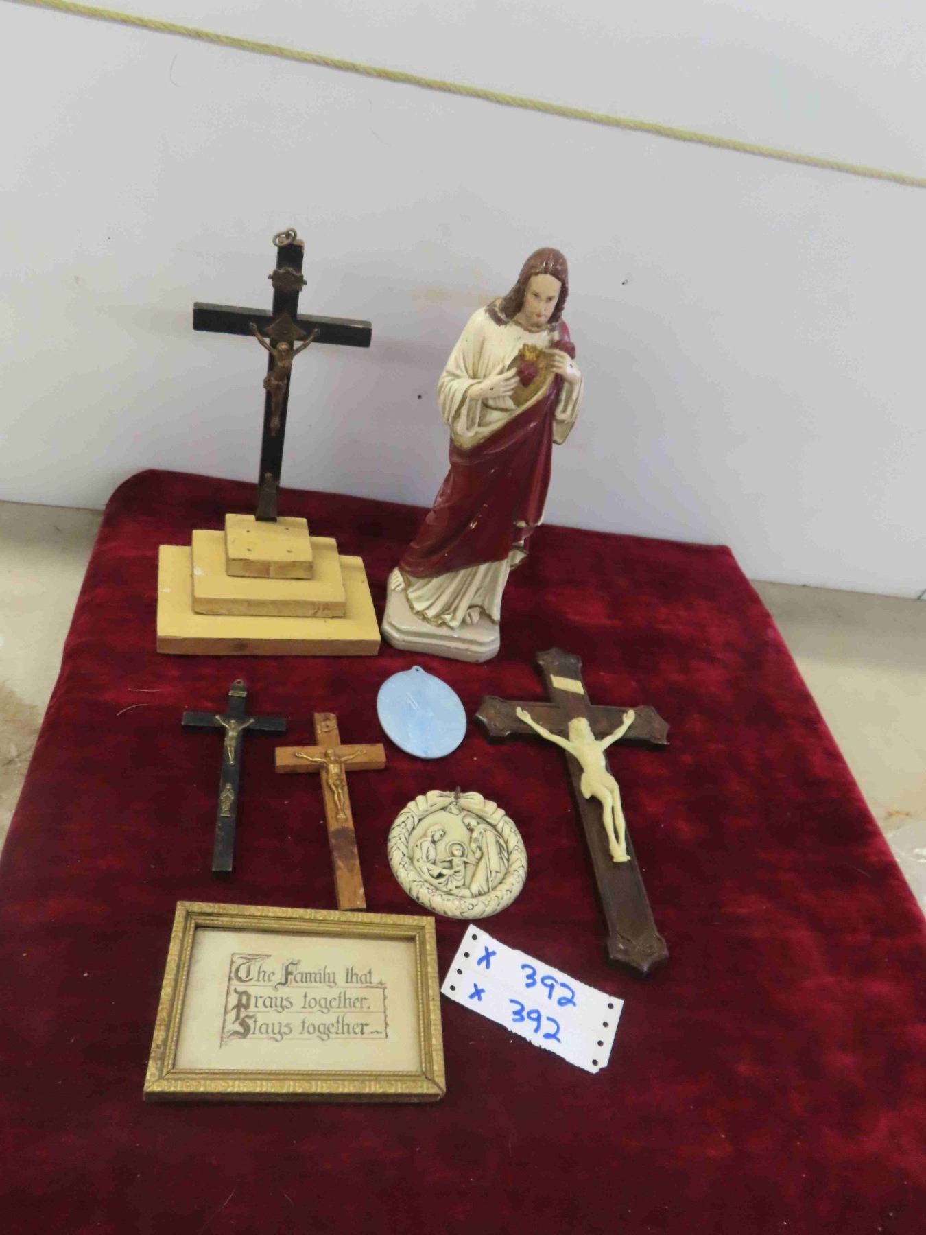 Religious Chalkware Jesus , Cross Displays , Framed Slogan