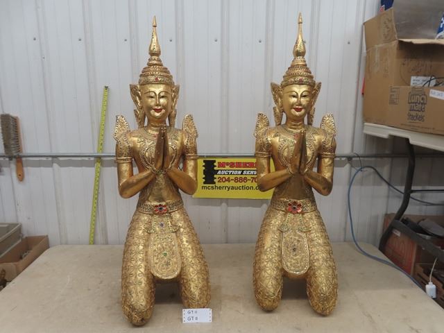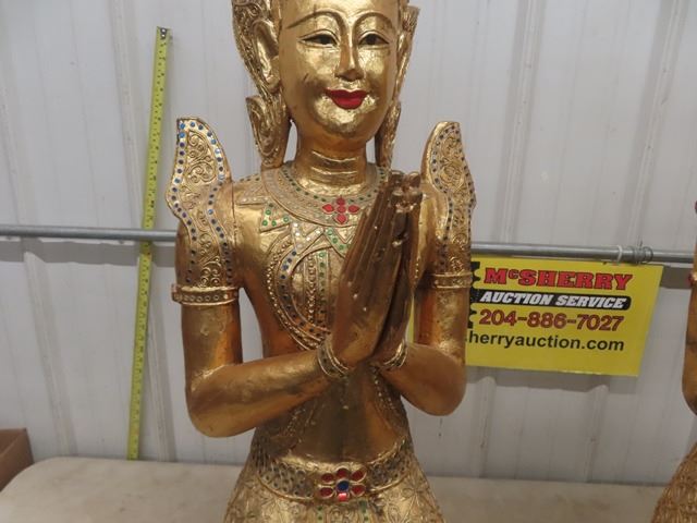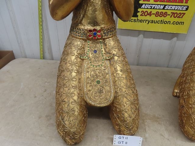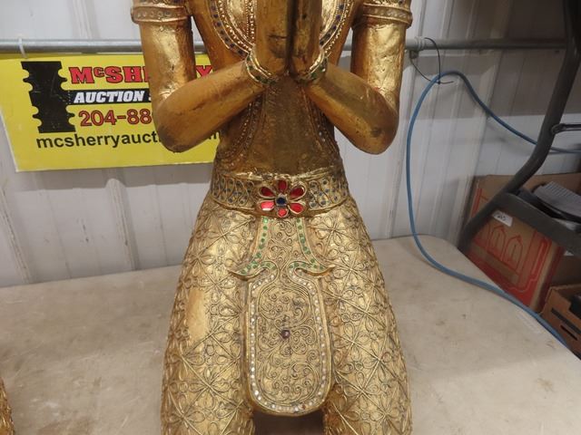 Religious Praying Golden Chalkware Statues - Bejeweled- 46" to Point
