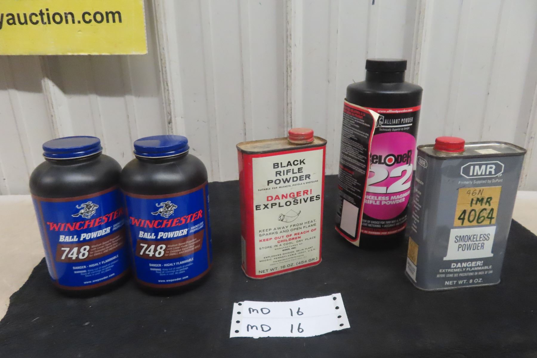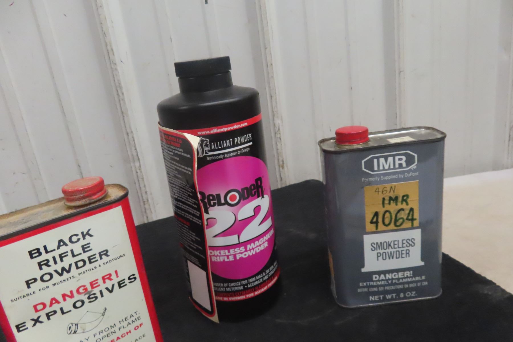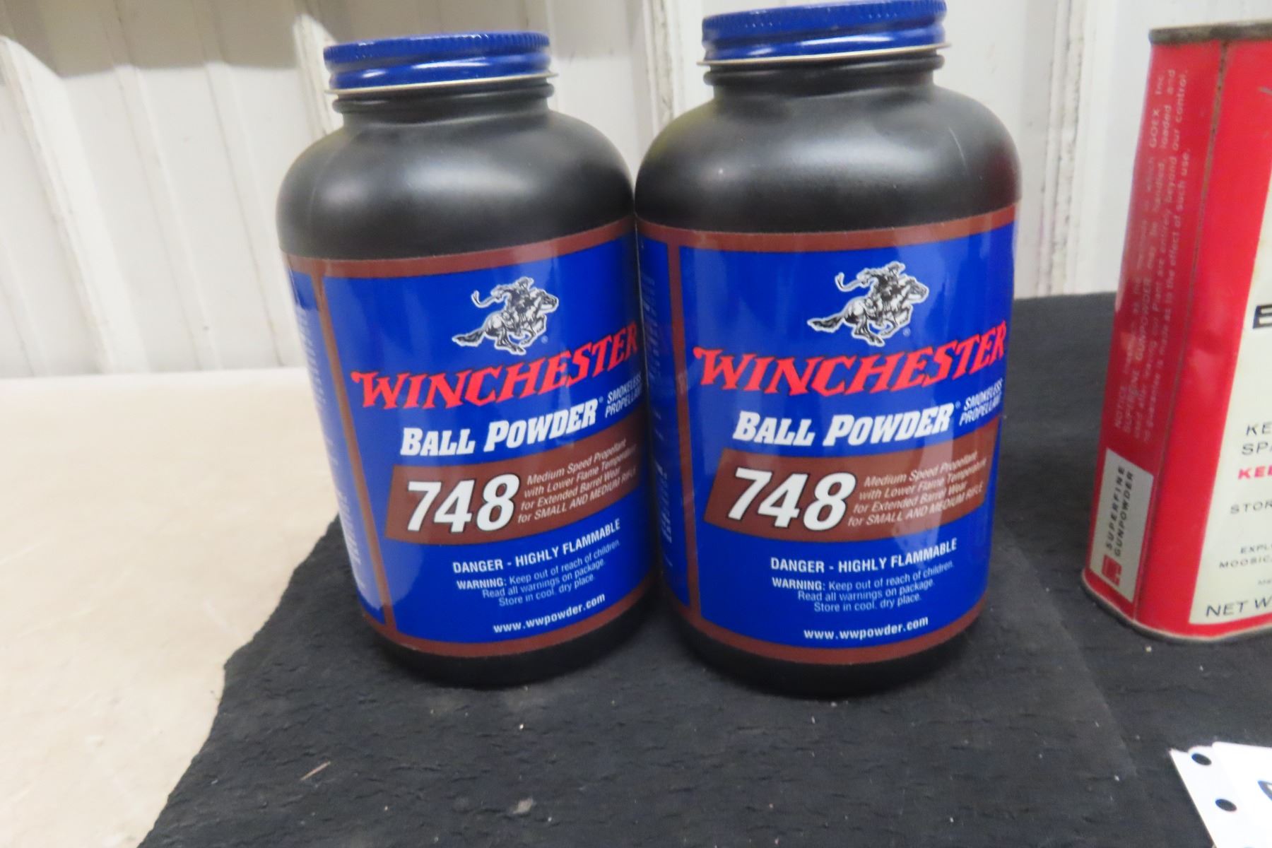 Reload Powder: 2 Winchester 748 Full, Black Rifle Powder Full, IMR 4064 1/3 Full **MUST HAVE A VALID PAL TO BID. WE CANNOT SHIP THIS PRODUCT. IF YOU REQUIRE SHIPPING AND BID ON THIS, YOU WILL BE RESPONSIBLE TO PAY FOR IT AND RESELL IT UNDER YOUR CONSIGNMENT IN THE NEXT GUN AUCTION.