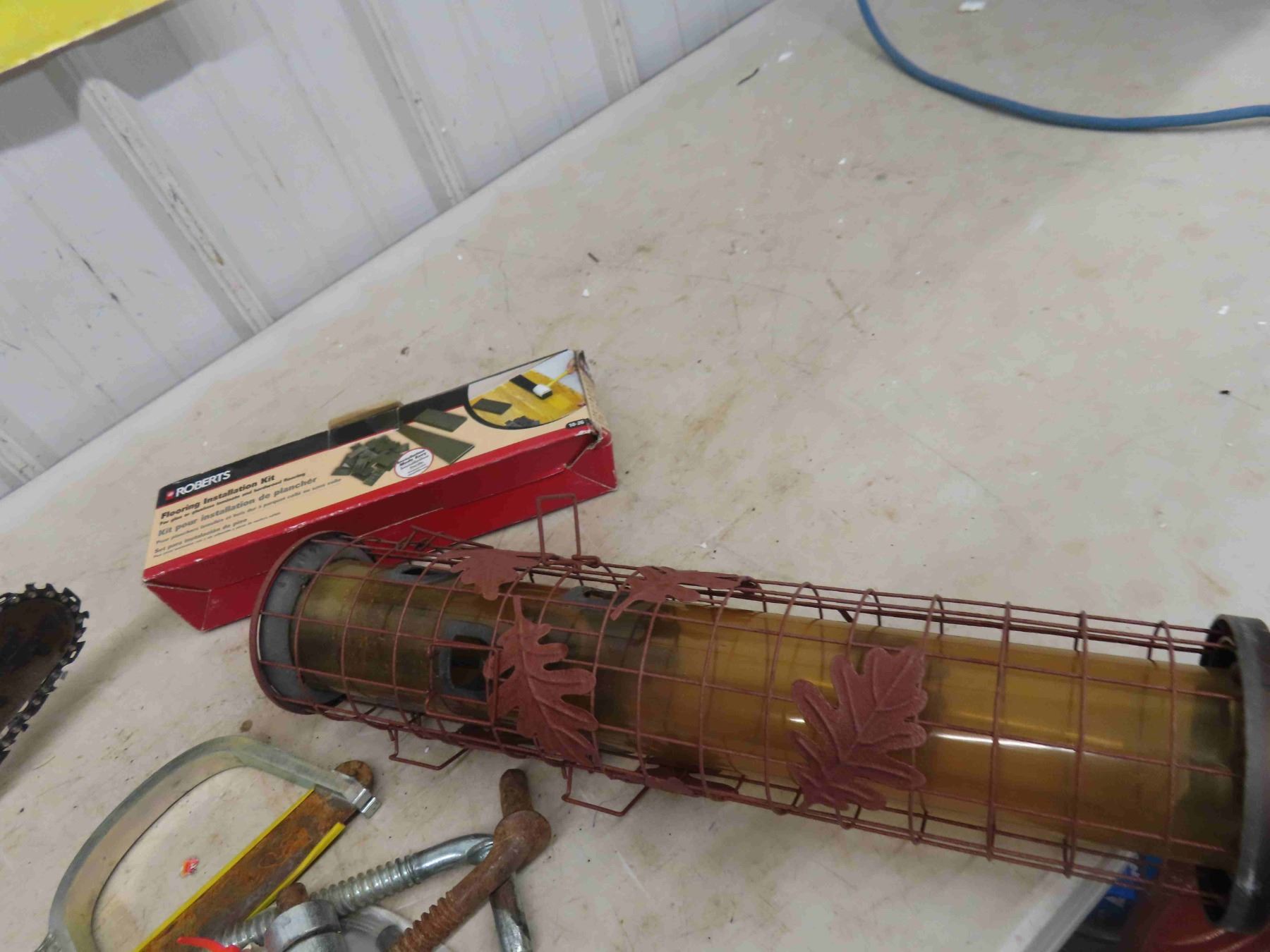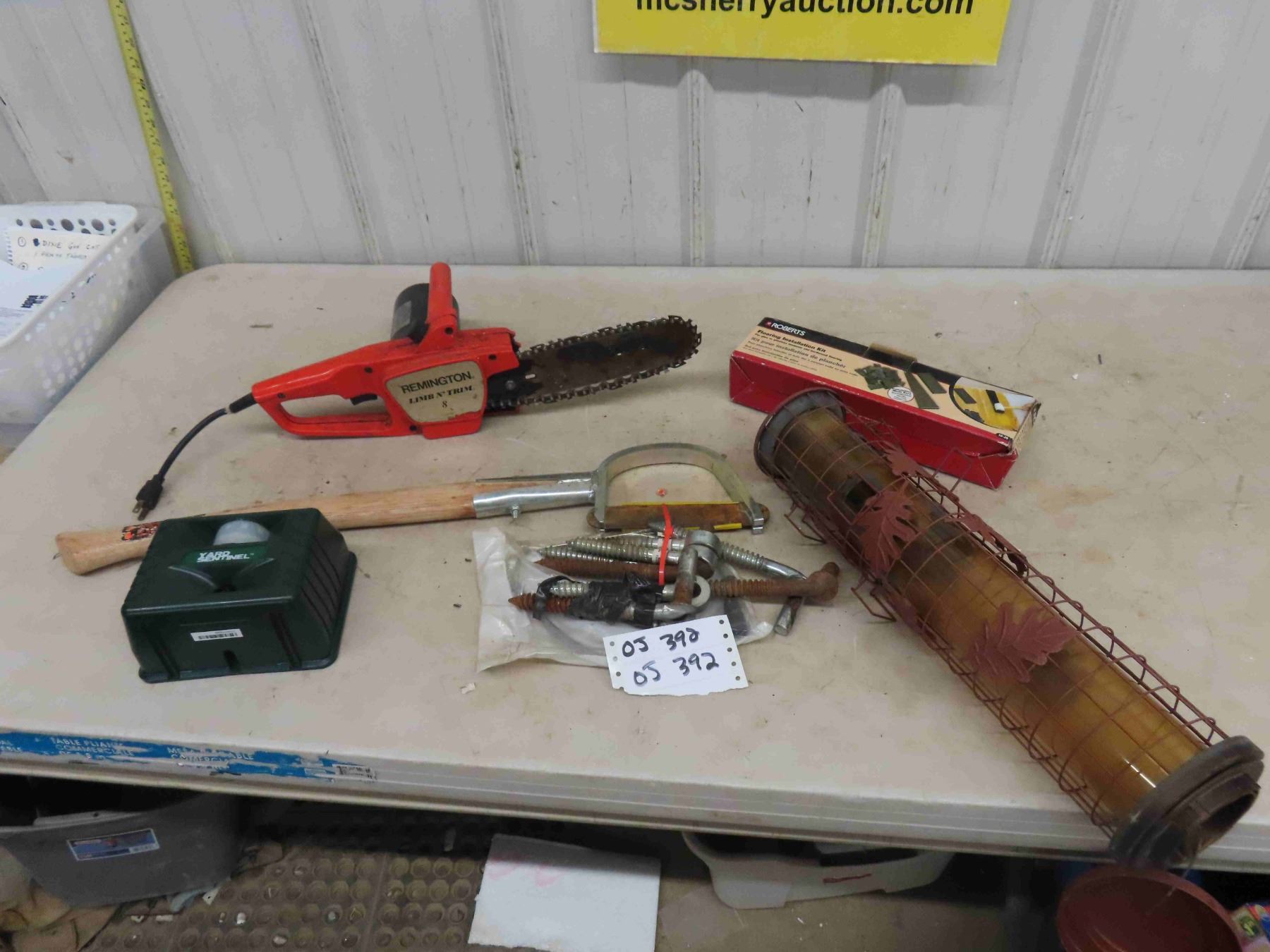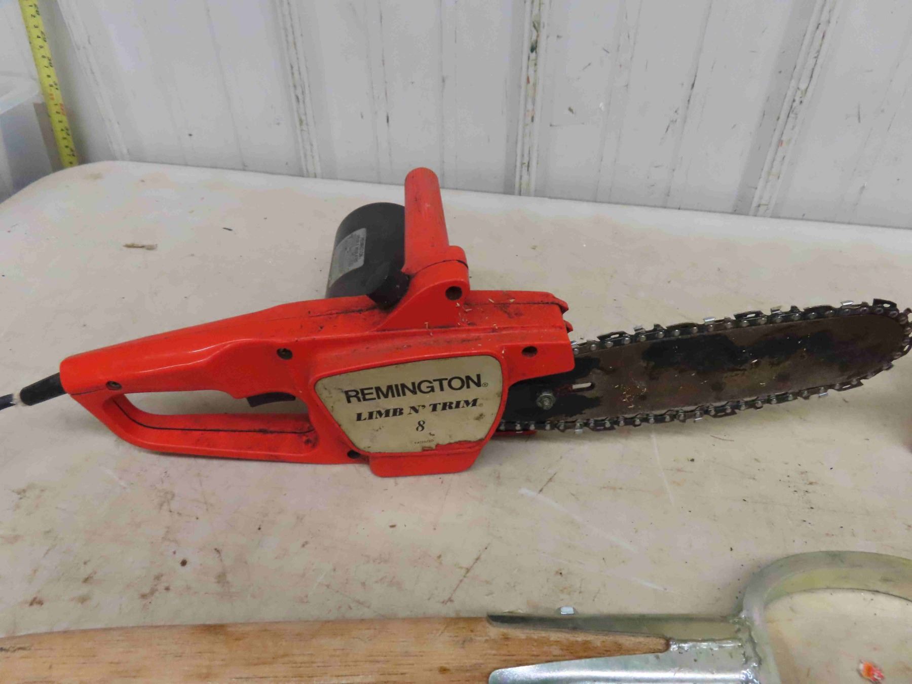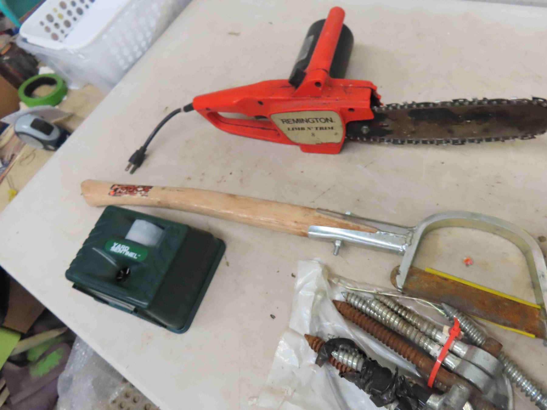 Rem 8 Electric Chain saw, Bird Feeder, Gate Hinges, Brush Knife, plus more