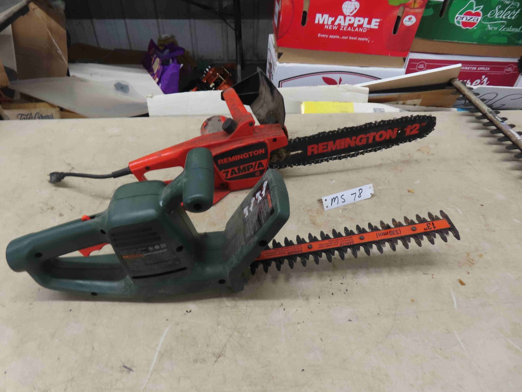 Remington 12" Electric 7 Amp Chainsaw & B+D 13" Electric Hedge Trimmer - Both Work