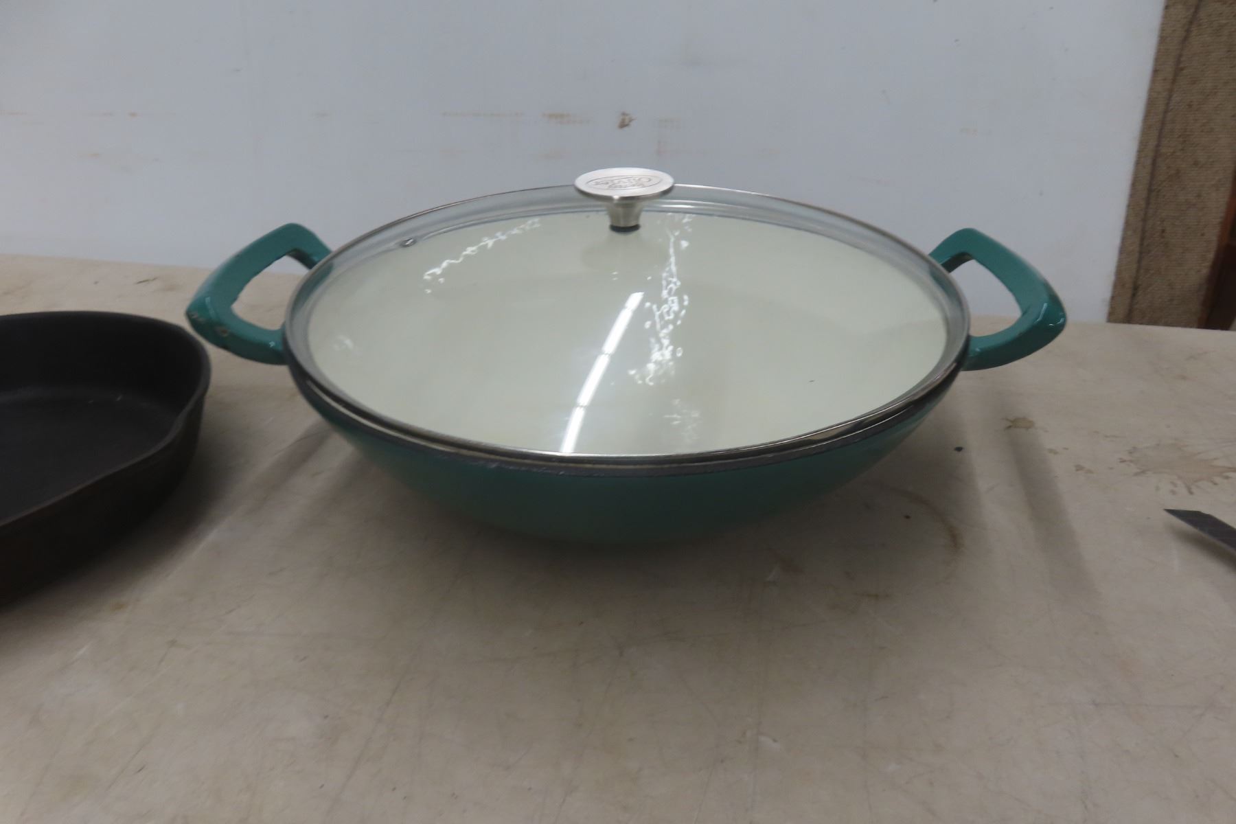 Remy Oliver Cast Iron Wok and Wagner Cast Iron Frying Pan, 12"