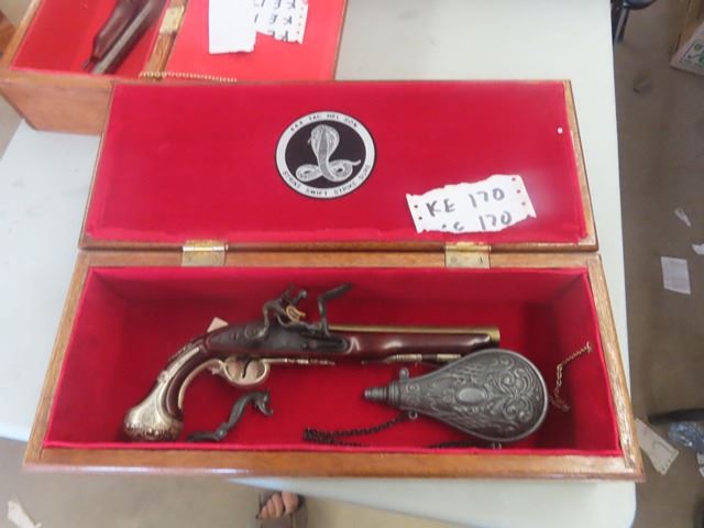 Replica Flint Pistol with Powder Flask With Case 13.5" Long
