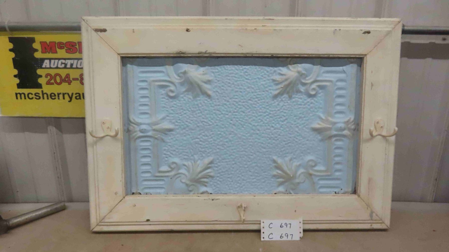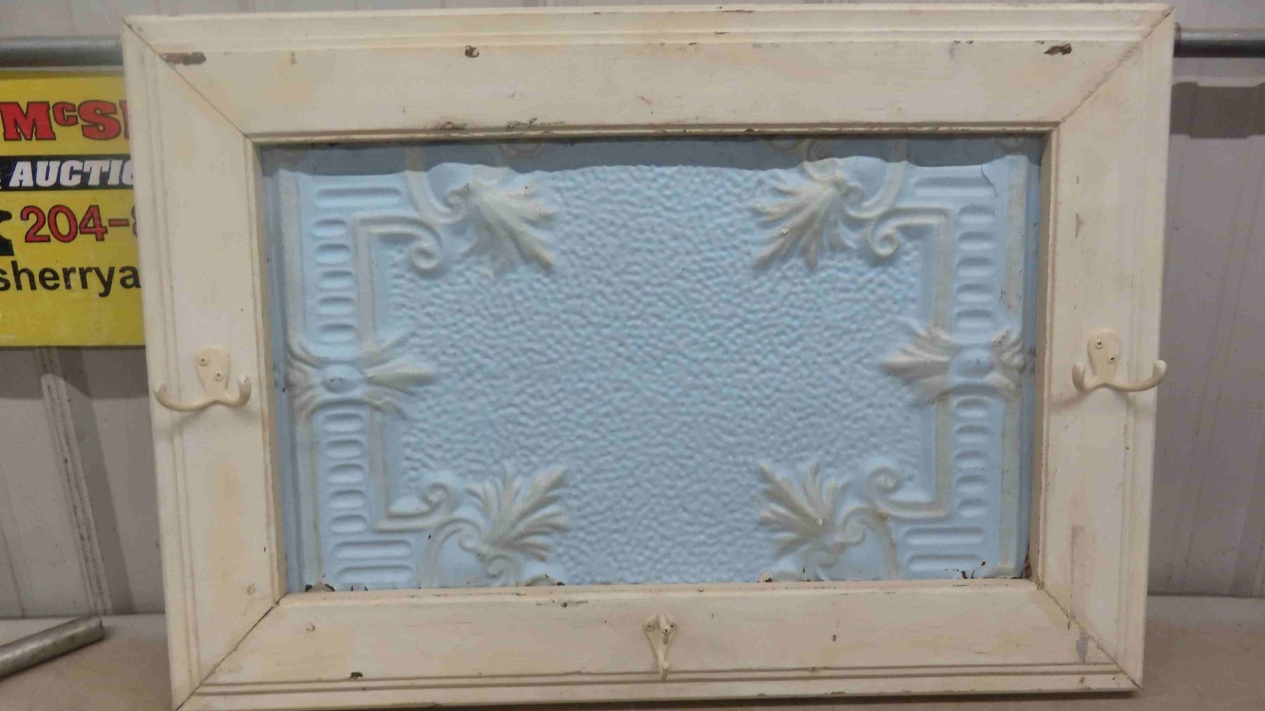 Repurposed Tin Ceiling with Wood Frame Coat Rack 31 1/2'' x 22''