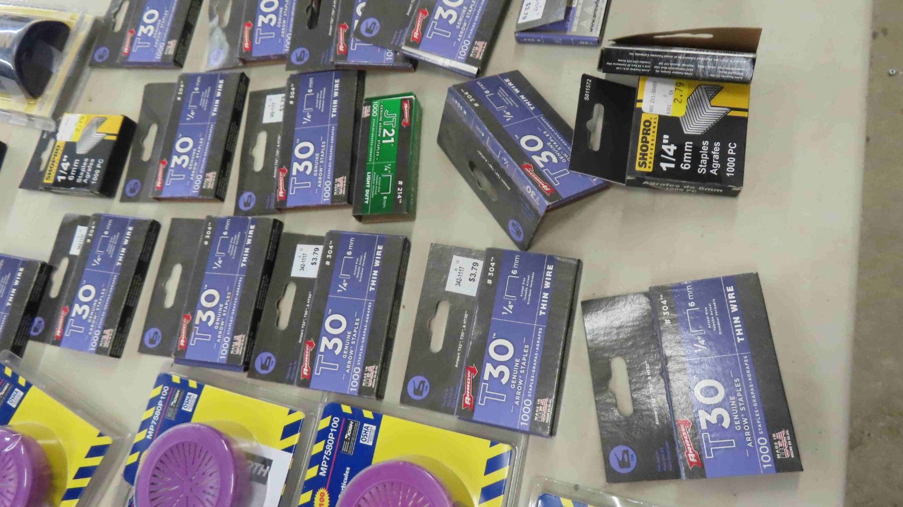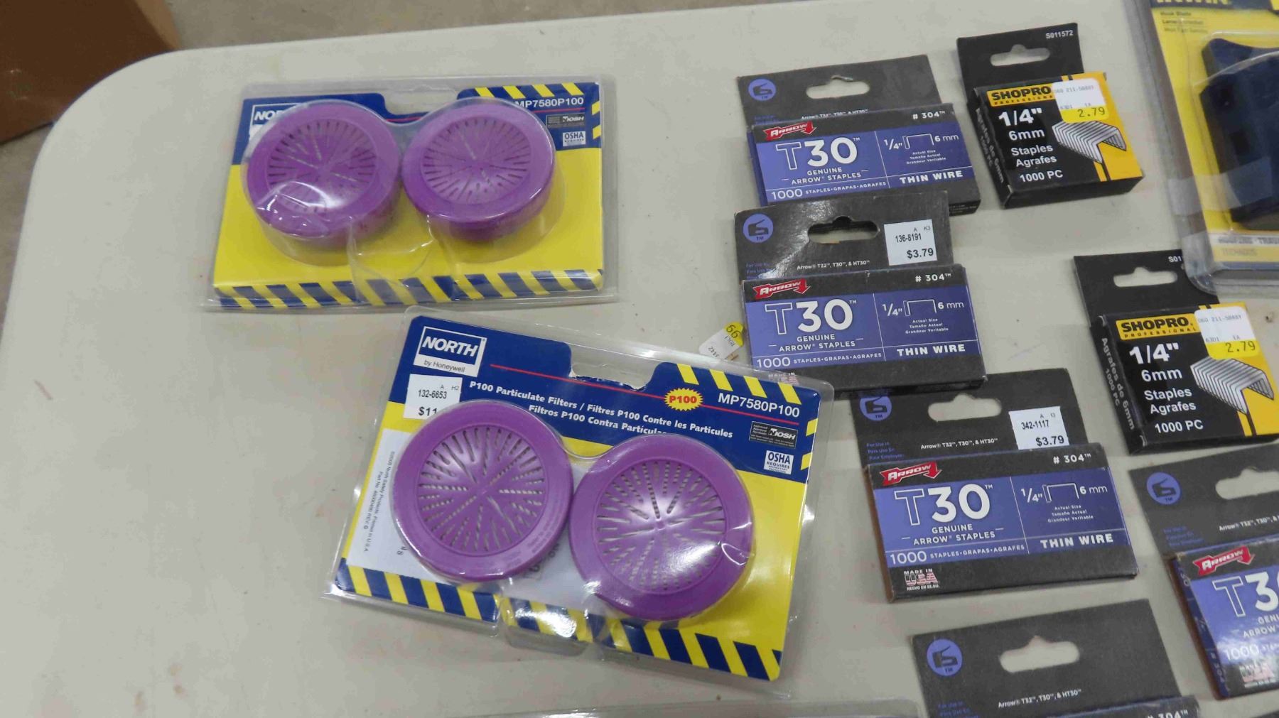 Respirator Filter, Staples, Utility Knife Blades, Some Hardware